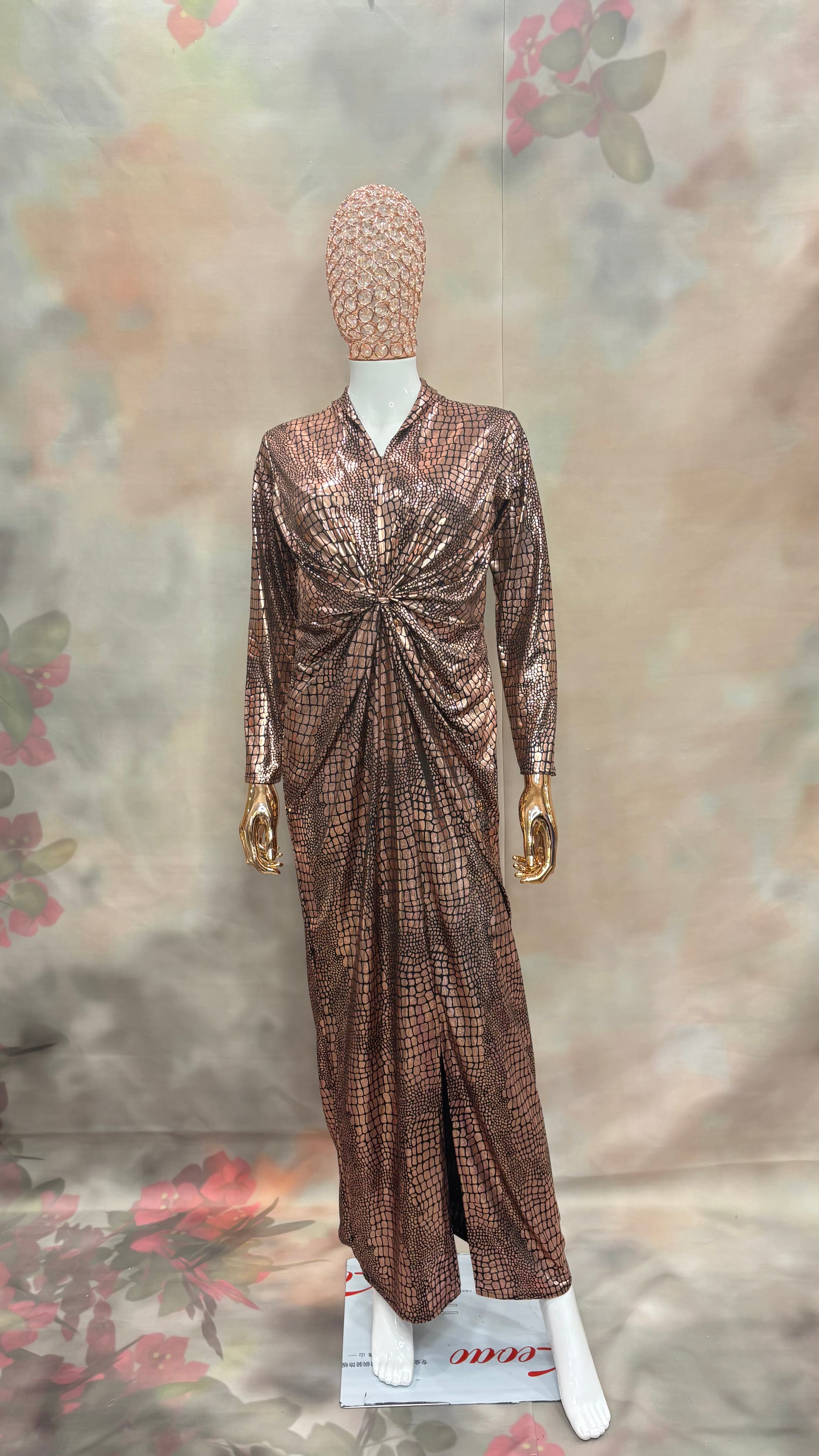 Molten Bronze – Metallic Knotted Gown with Luxe Sheen