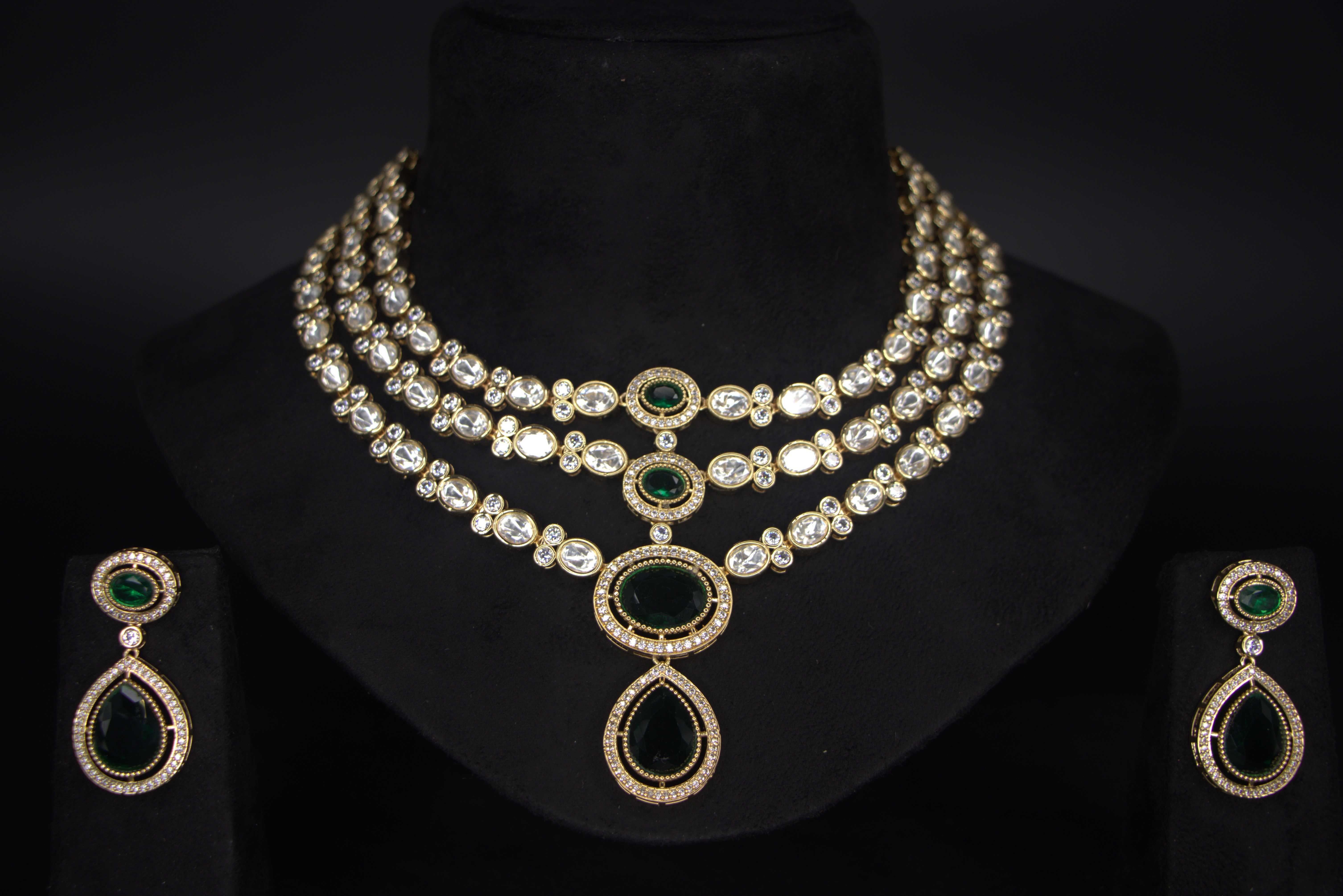 GaploEmerald Kundan Bridal Necklace& American Diamond Necklace Set – Emerald Green CharmElevate your style with the Elegant Polki & American Diamond Necklace Set, featuring a triple-layered necklace adorned with emerald-green stones,... From Rs. 2,279.00 Rs. 3,799.00Rs. 2,279.00Rs. 2,279.00 Rs. 3,799.00Re-stocking soon