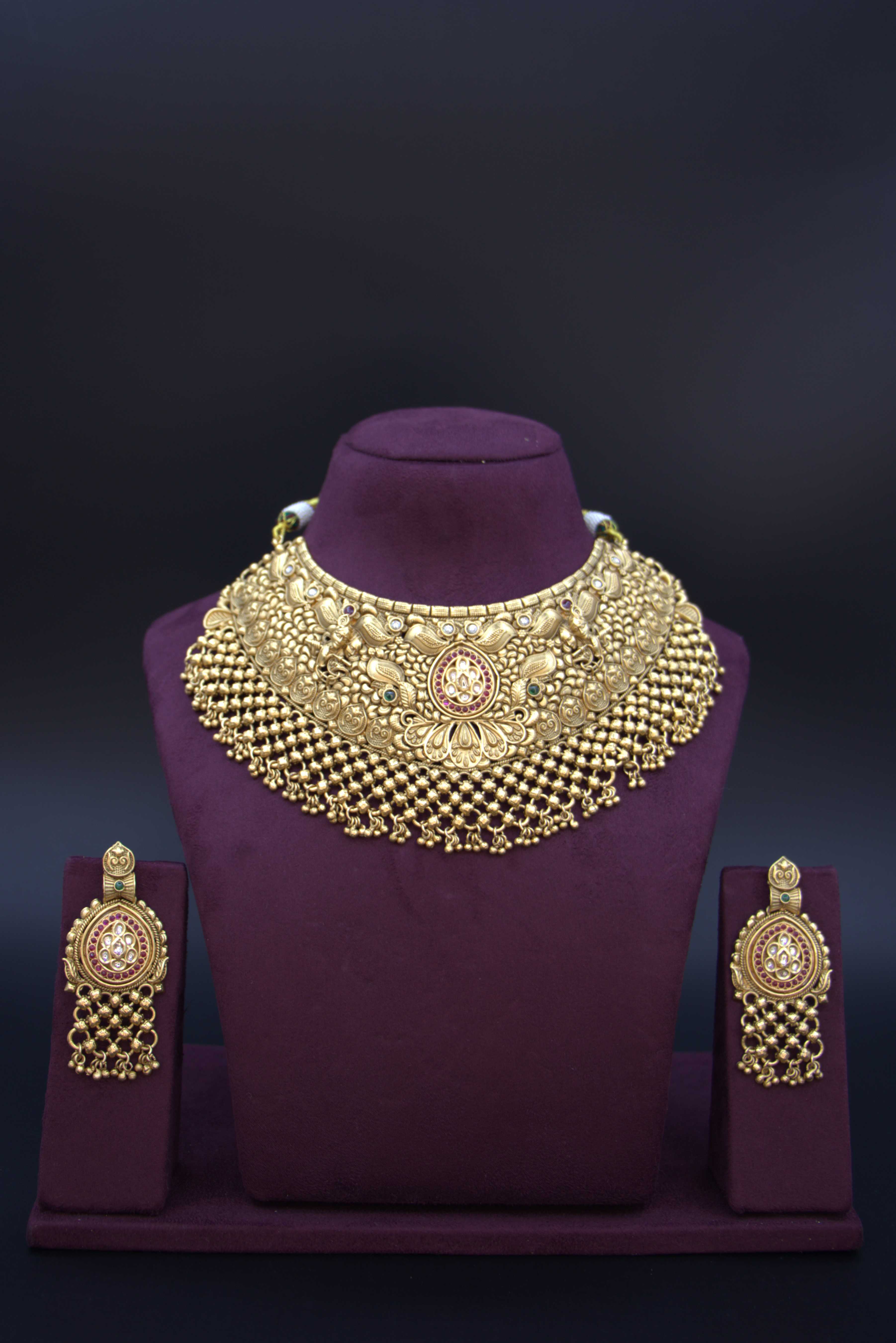 GaploPeacock Motif Temple Bridal Jewellery SetRent our Lotus Motif Bridal Jewellery Set at FZO, Jubilee Hills, Hyderabad. Featuring hand-painted lotus patterns, sparkling white stones, and... From Rs. 719.00 Rs. 1,199.00Rs. 719.00Rs. 719.00 Rs. 1,199.00Re-stocking soon