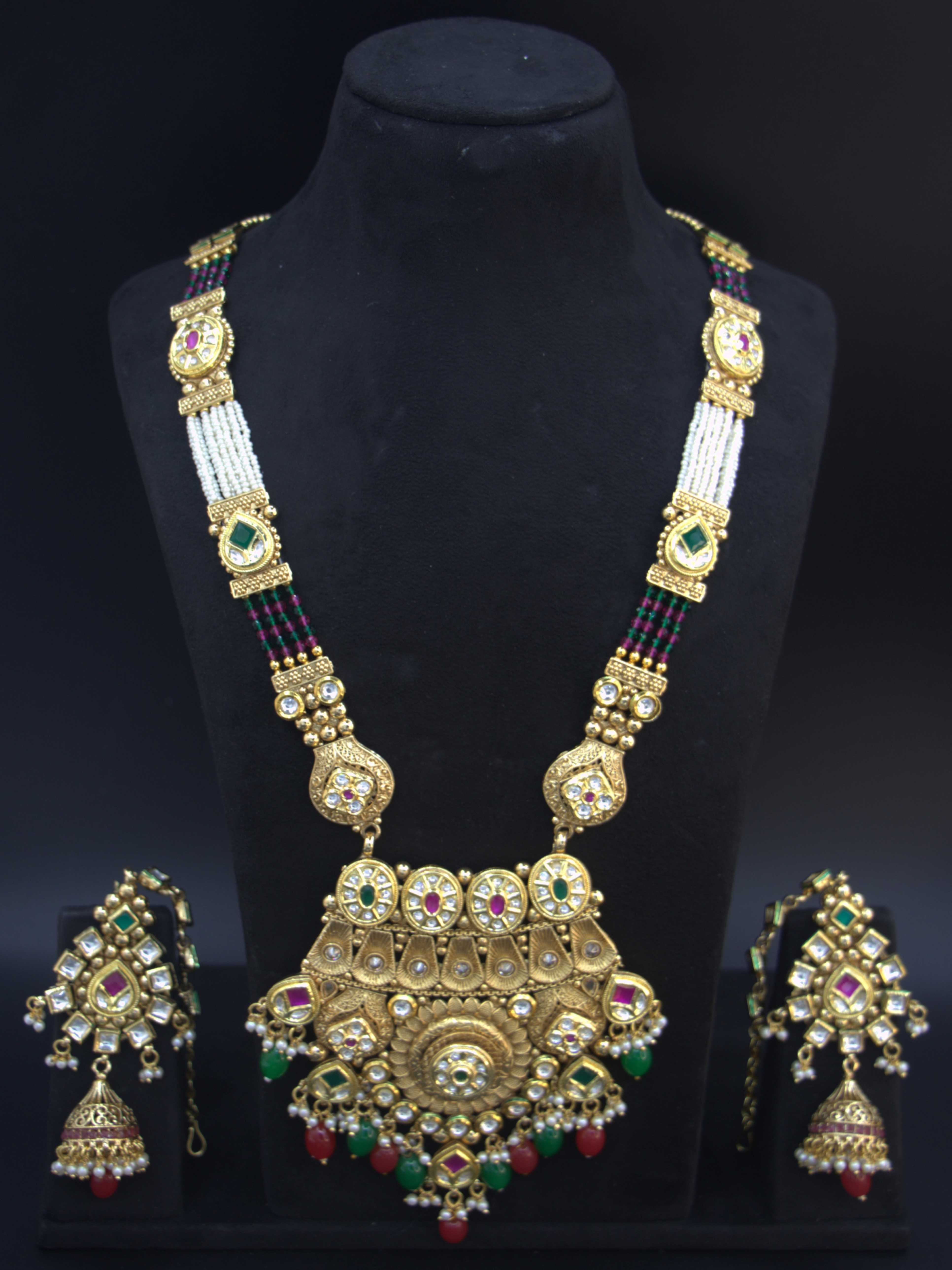 GaploMulticolour Navratan Bridal Polki Necklace SetDiscover the elegance of tradition and modernity with our exquisite Monalisa Navaratna Stone Jewellery Set. This handcrafted masterpiece is designed... From Rs. 8,159.00 Rs. 13,599.00Rs. 8,159.00Rs. 8,159.00 Rs. 13,599.00Re-stocking soon