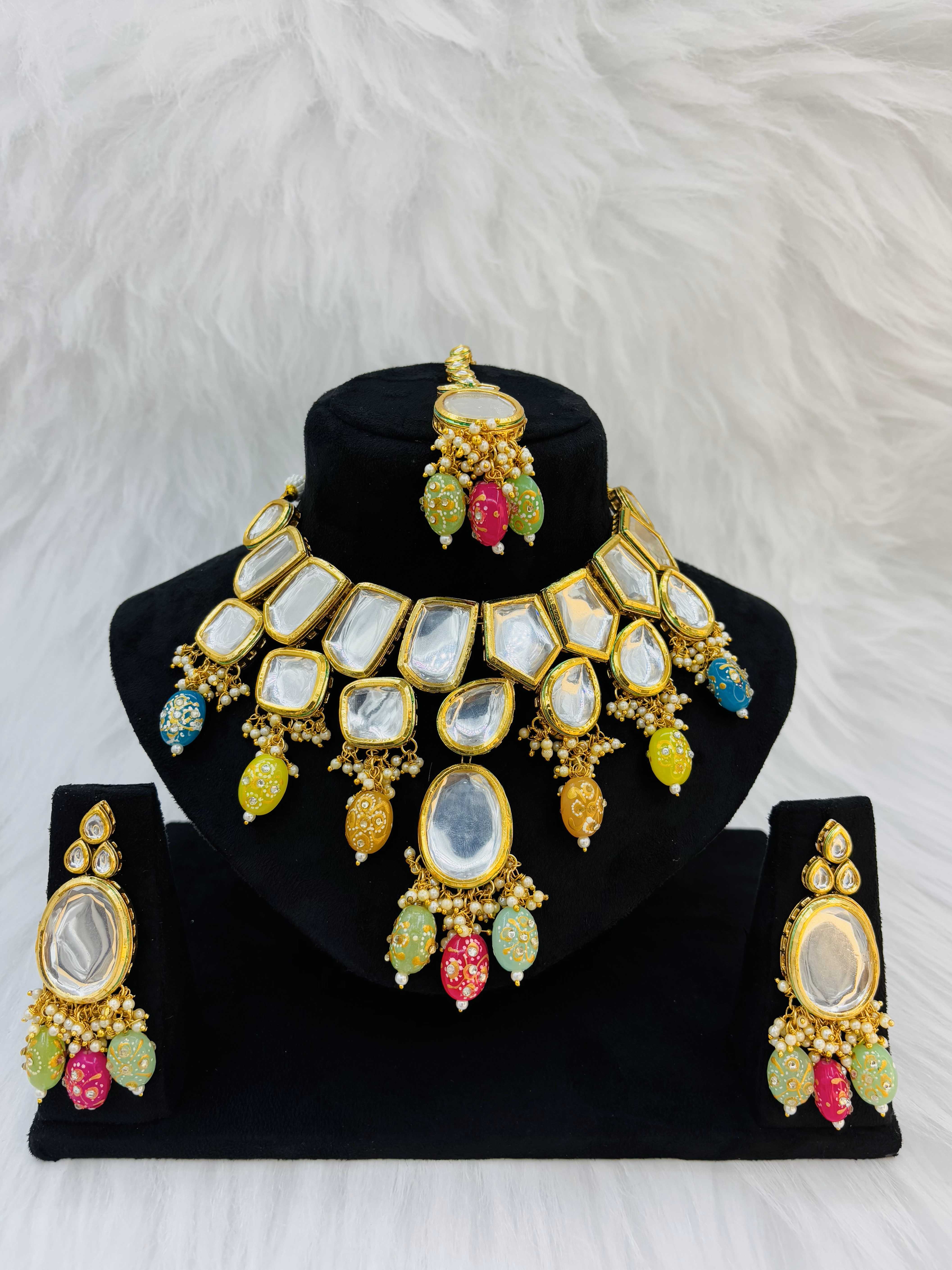 GaploPolki Kundan Necklace Set with Multicolor Meenakari BeadsRent our Vibrant Multicolor Kundan Set at FZO, Jubilee Hills, Hyderabad. Designed to celebrate tradition with flair, this festive choker... From Rs. 1,439.00 Rs. 2,399.00Rs. 1,439.00Rs. 1,439.00 Rs. 2,399.00Re-stocking soon