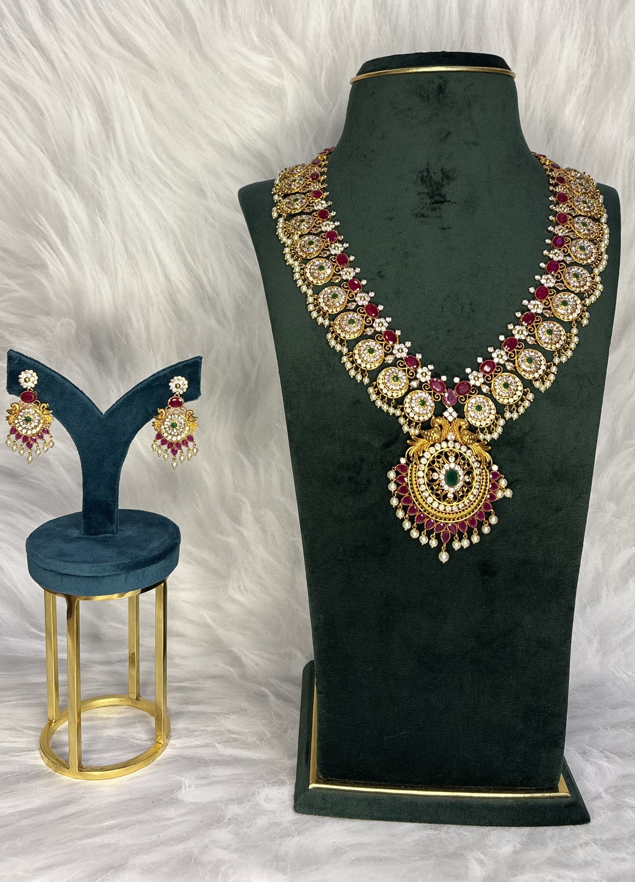 GaploRuby Radiance Peacock Temple Necklace SetMake a statement with our Royal Ruby Kundan Necklace Set, now available for rent at FZO, Jubilee Hills, Hyderabad. Designed... Rs. 2,159.00 Rs. 3,599.00Rs. 2,159.00Rs. 2,159.00 Rs. 3,599.00Re-stocking soon