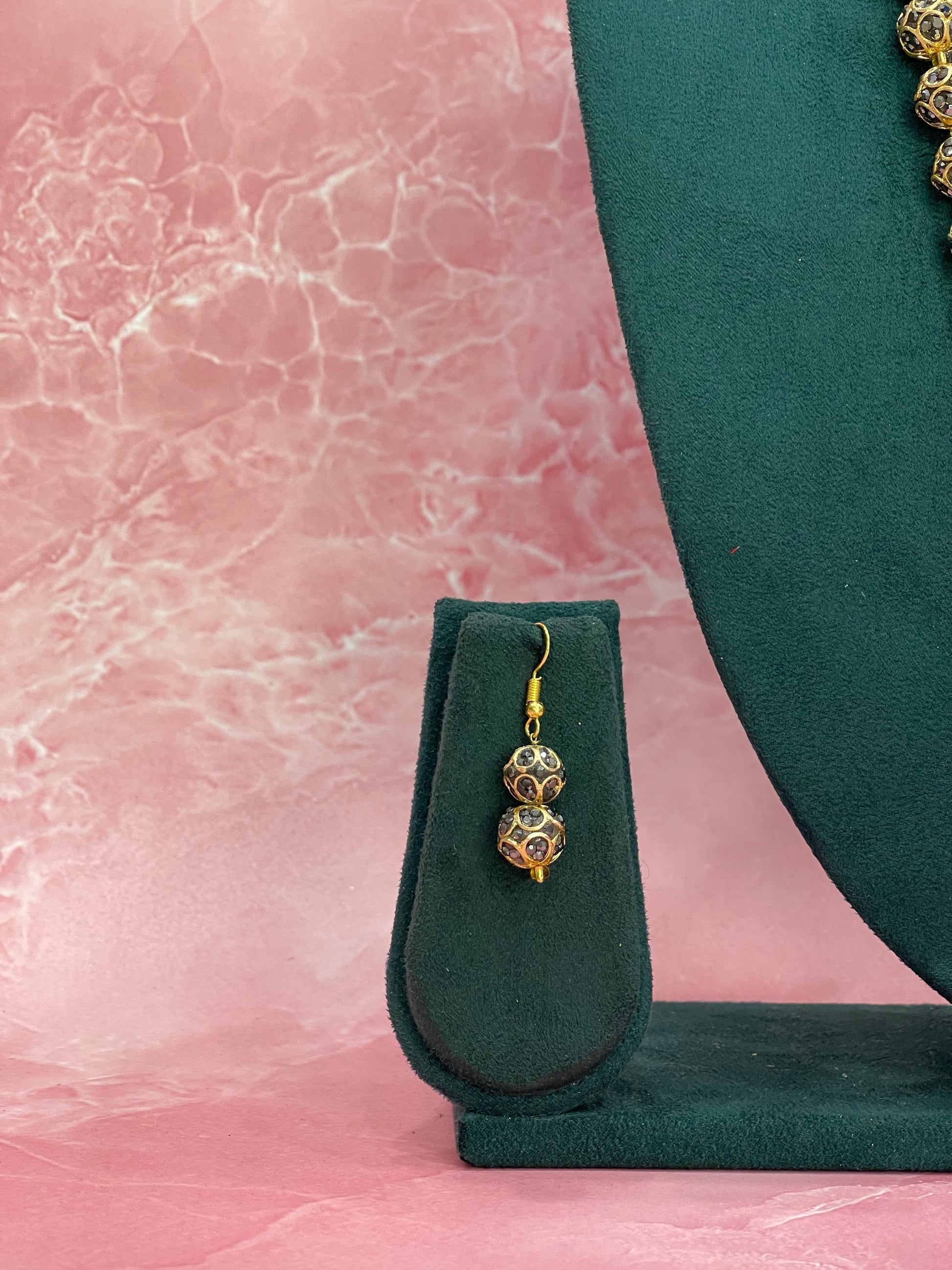 Antique gold-toned bead necklace with matching filigree drop earrings.