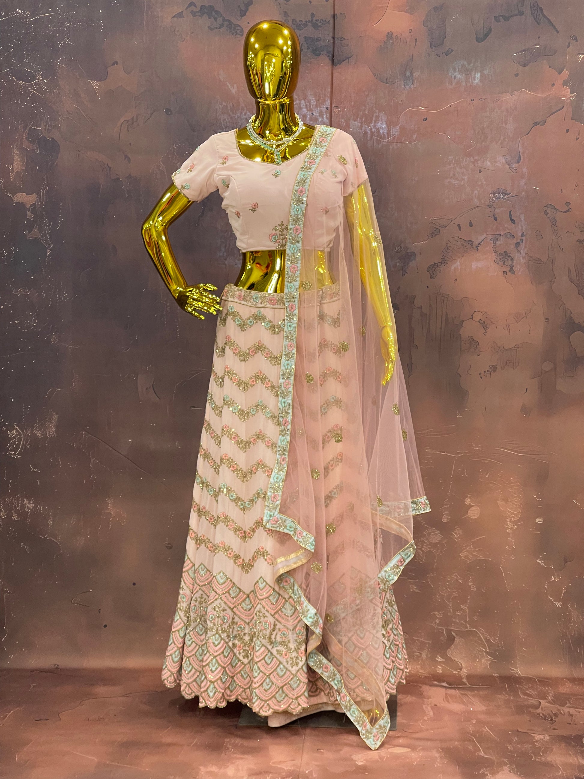 ✨ Make your pastel dream come true – rent Blush Cascade now at FZO, Jubilee Hills – Hyderabad’s finest stop for elegant lehenga rentals.