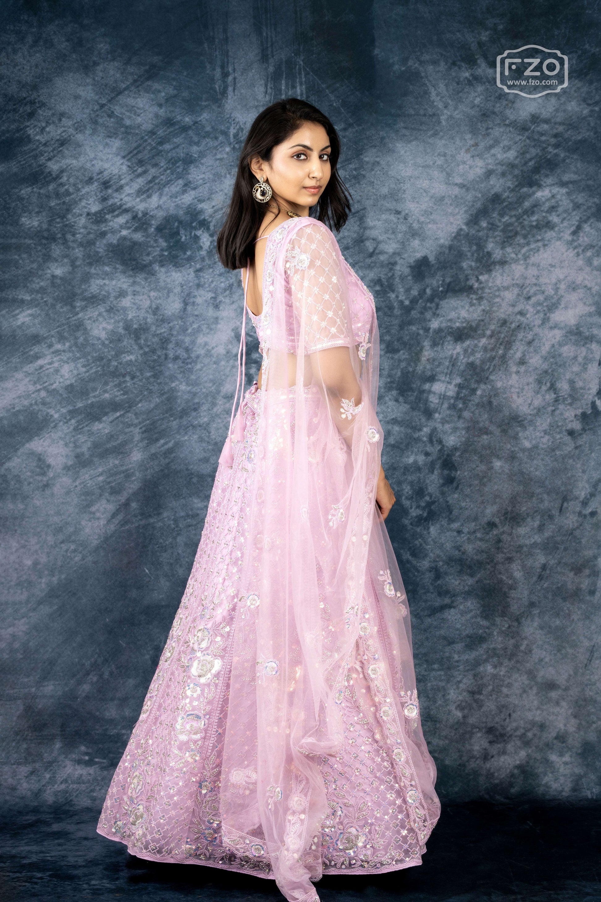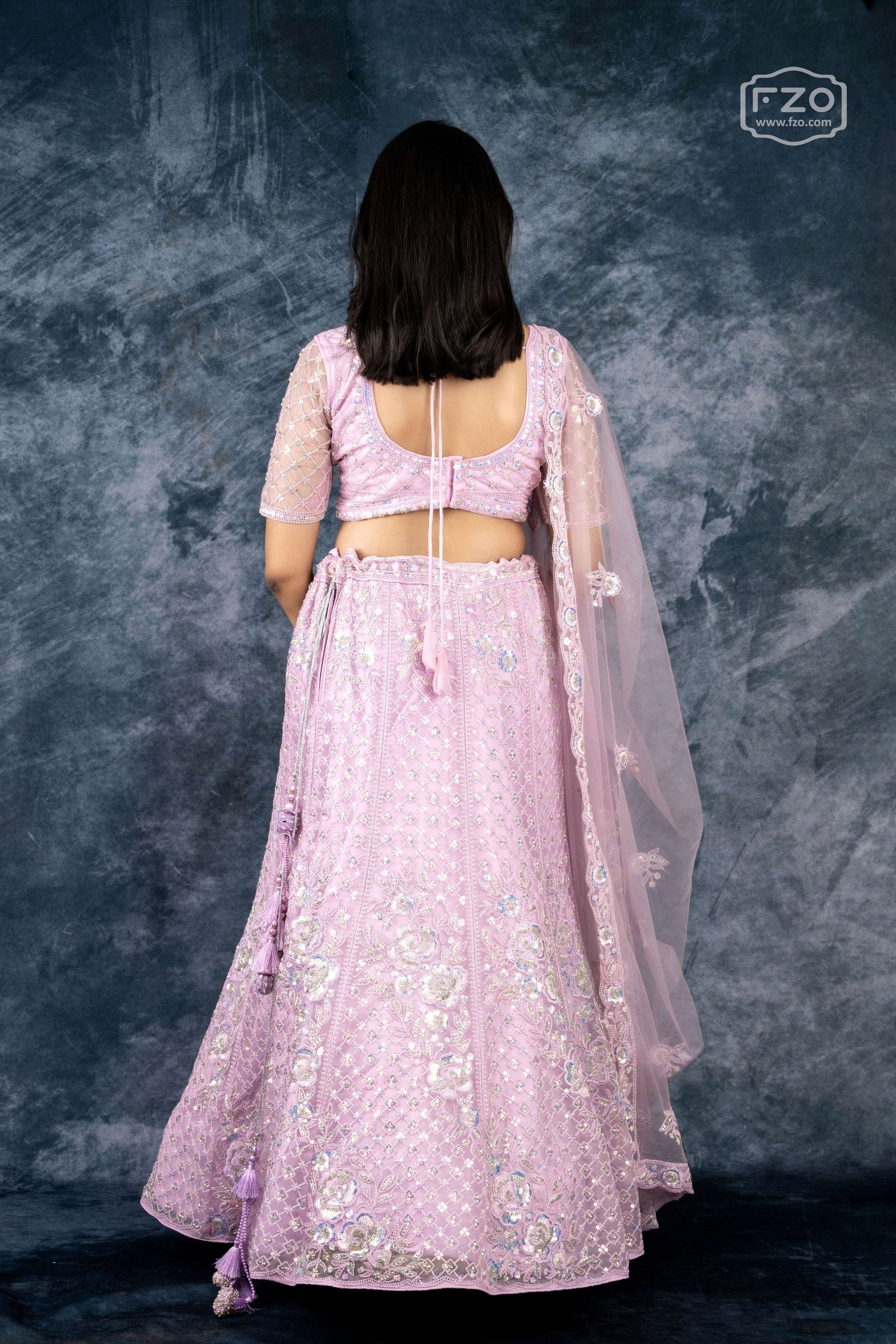 Lilac Blossom – Sequin Embroidered Net Lehenga in Pastel Pink