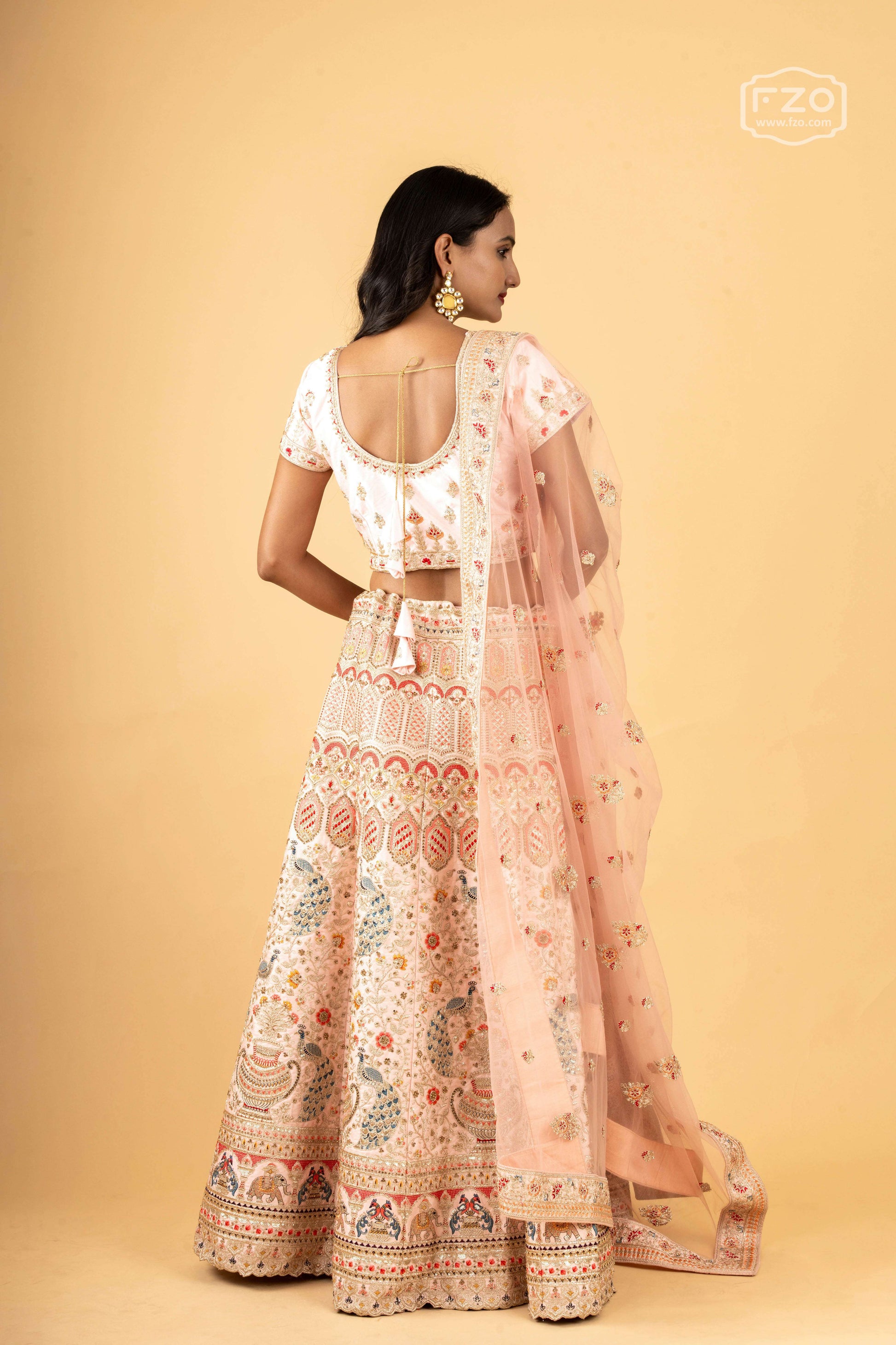 Blush Royale – Peach Zardosi Bridal Lehenga with Floral Embroidery