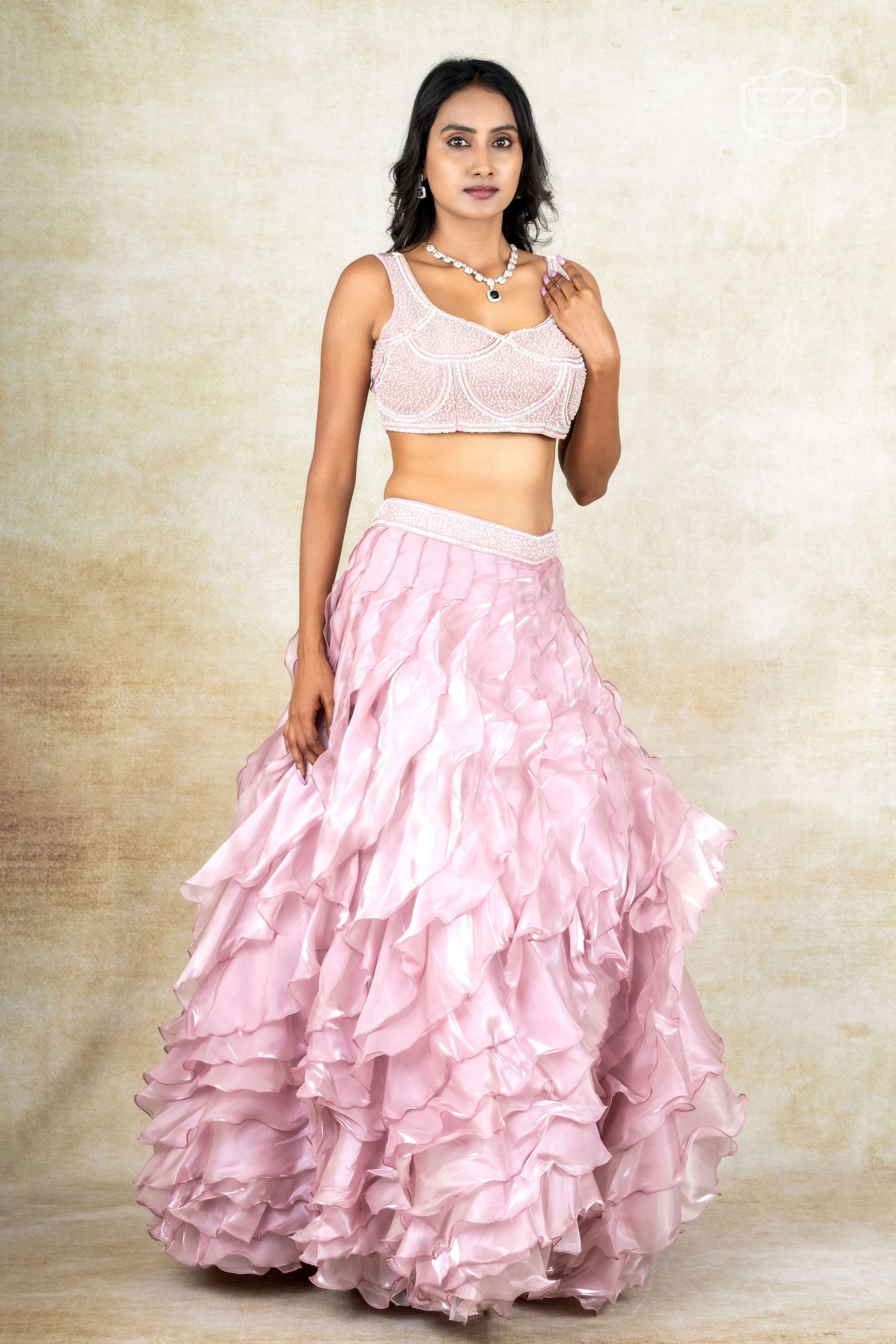Blush Ruffle – Pastel Pink Jacket Style Lehenga – Modern Designer Outfit for Parties & Weddings