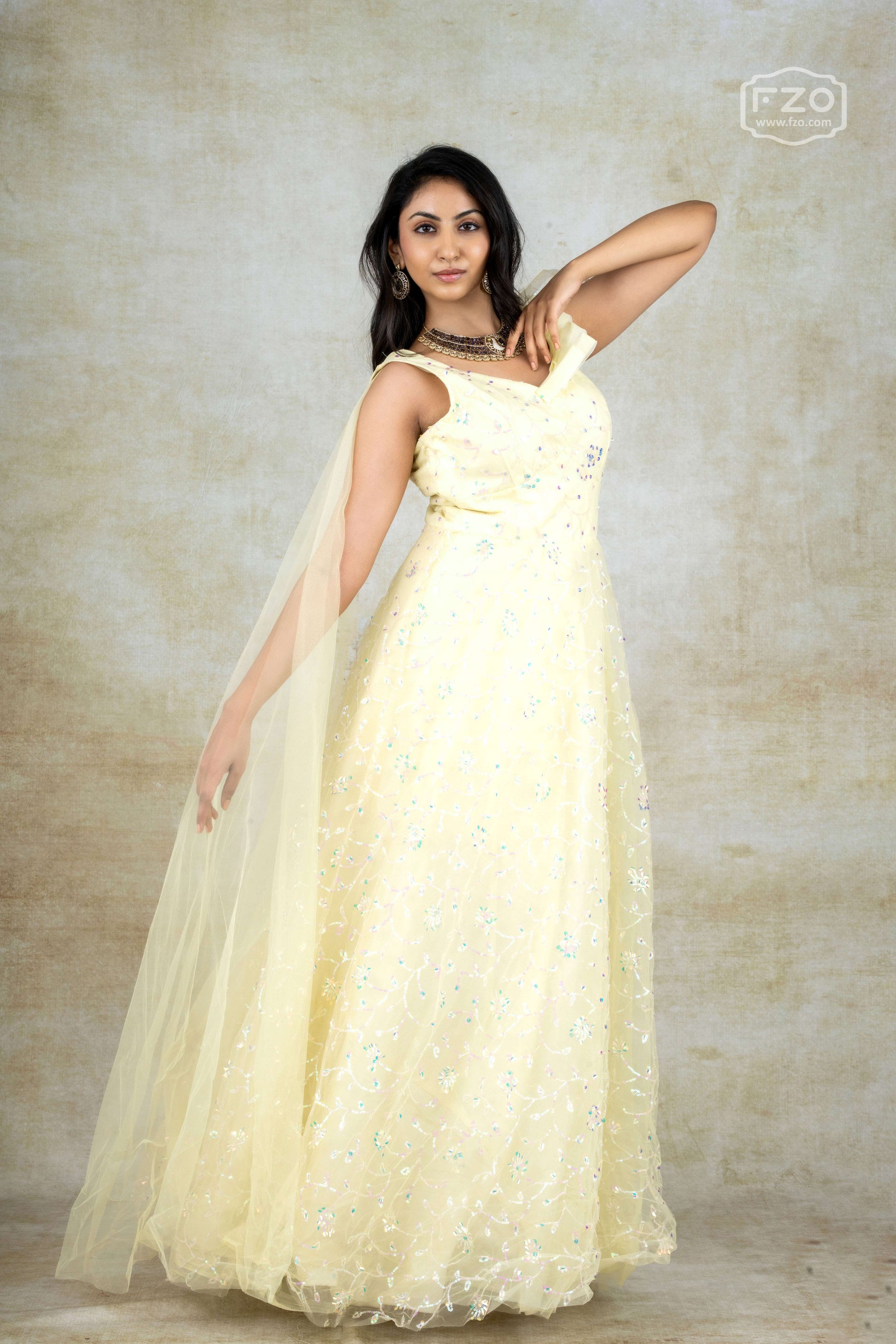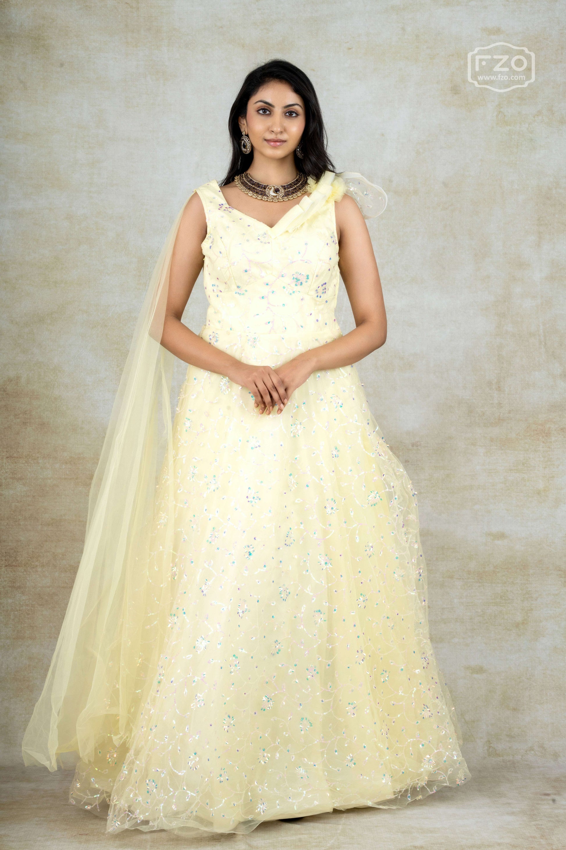 Pastel Yellow Sequin Embroidered Gown with Dupatta
