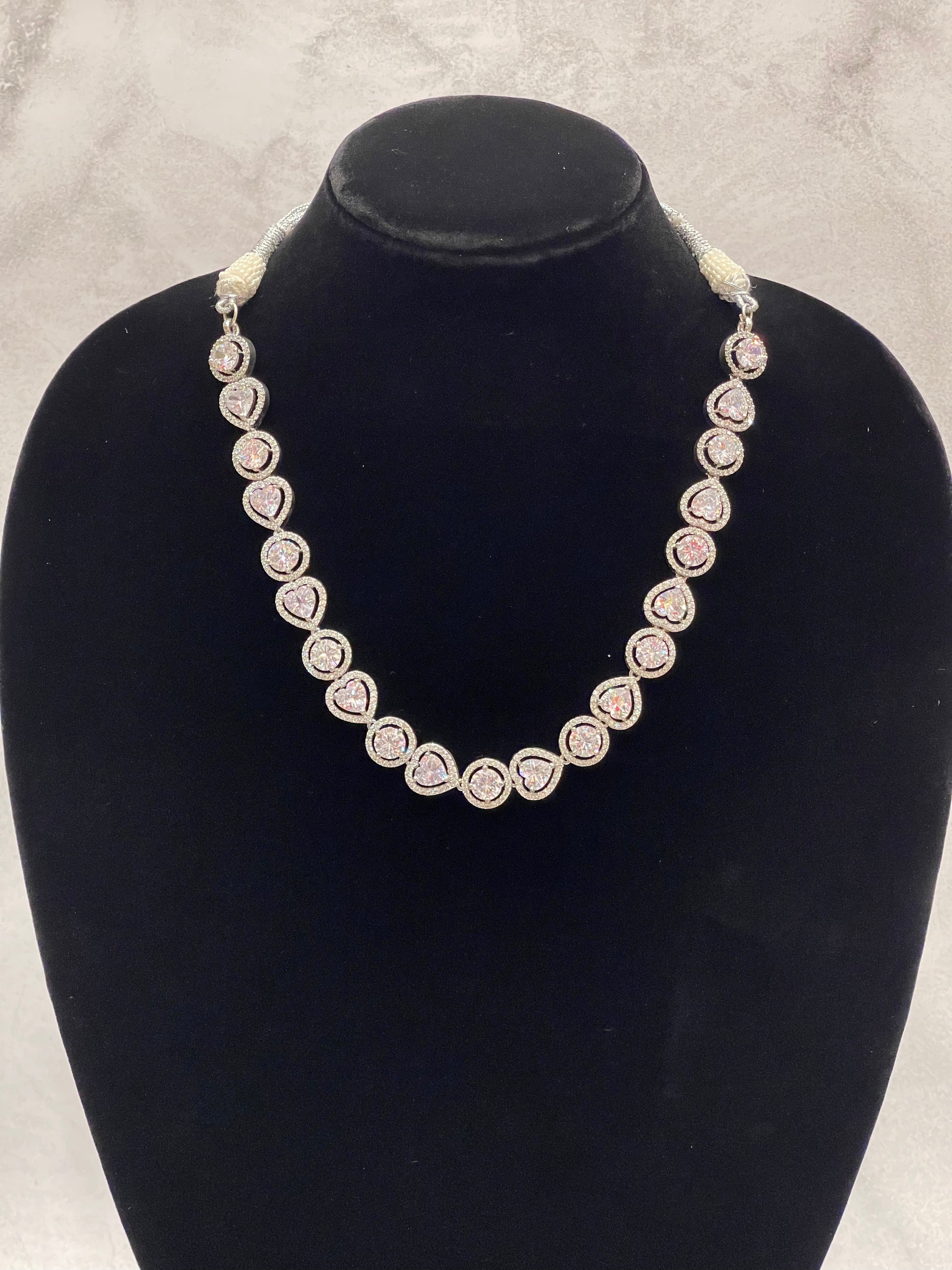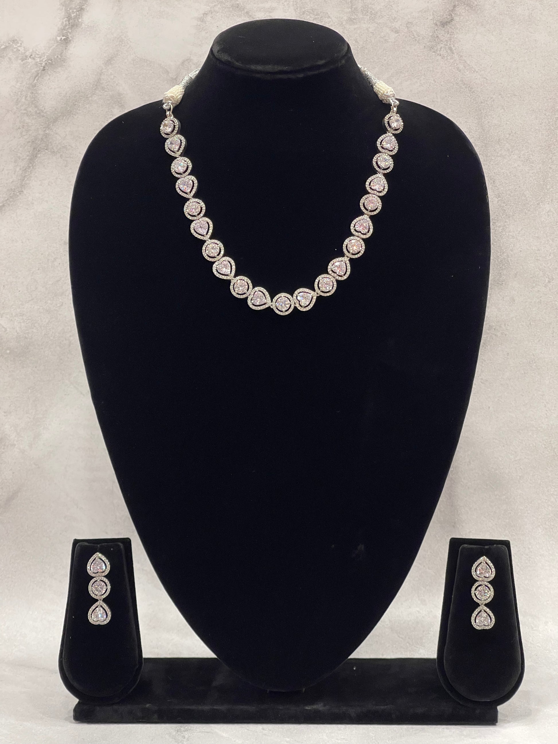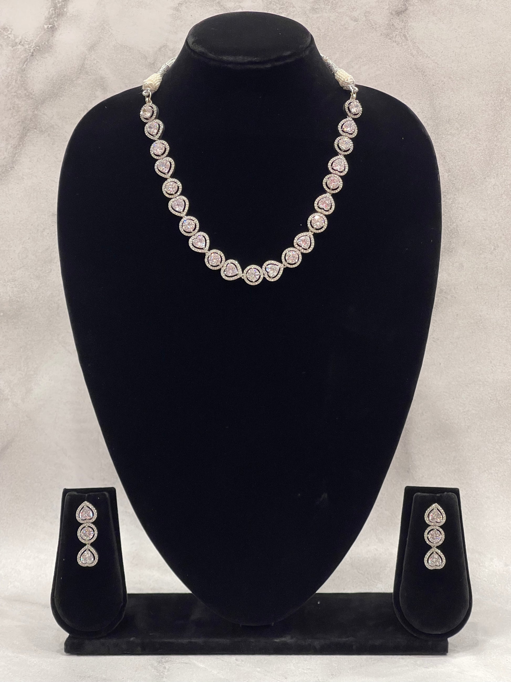 Teardrop Radiance – Diamond-Cut CZ Necklace Set in Silver Finish