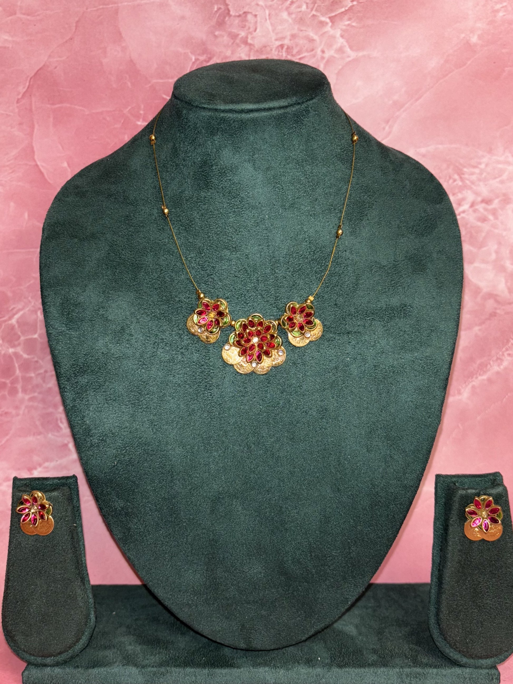 Blossom Dusk – Ruby Floral Minimal Necklace Set