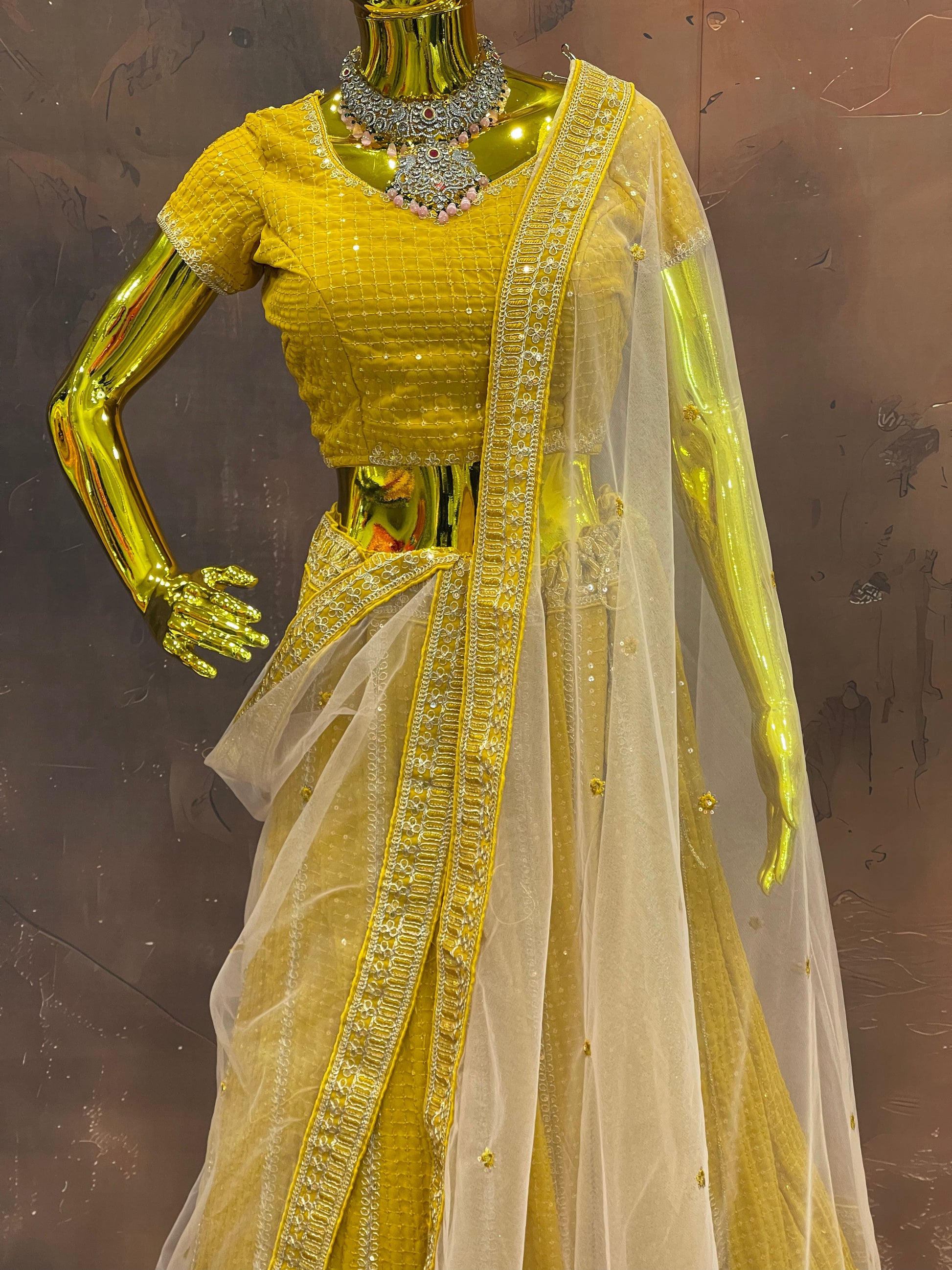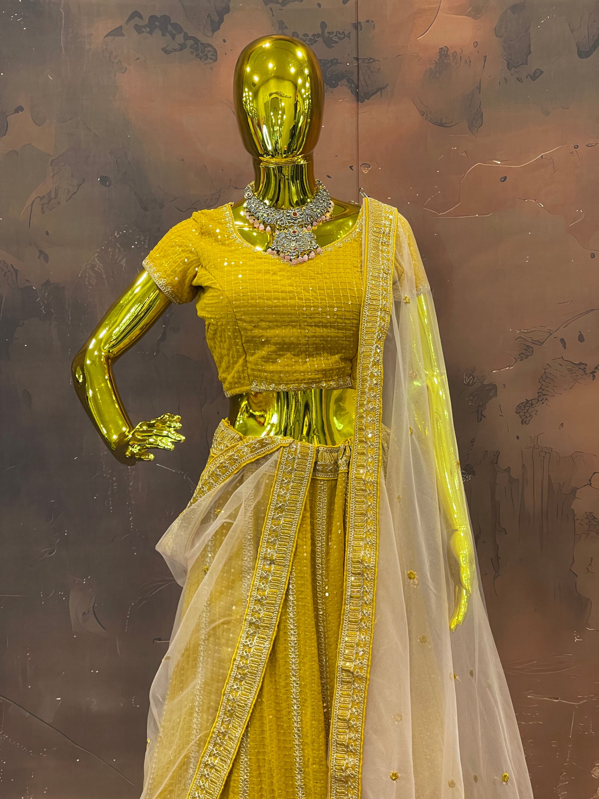 Radiate warmth and elegance in this stunning Golden Glow lehenga set, a perfect choice for Haldi ceremonies, festive daytime events, and joyous celebrations. Available now at FZO, Jubilee Hills, Hyderabad. Sizes: M to XL – Tailored for a comfortable, graceful fit.