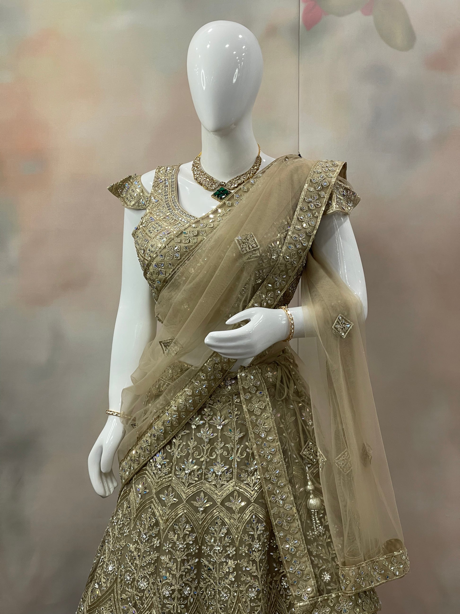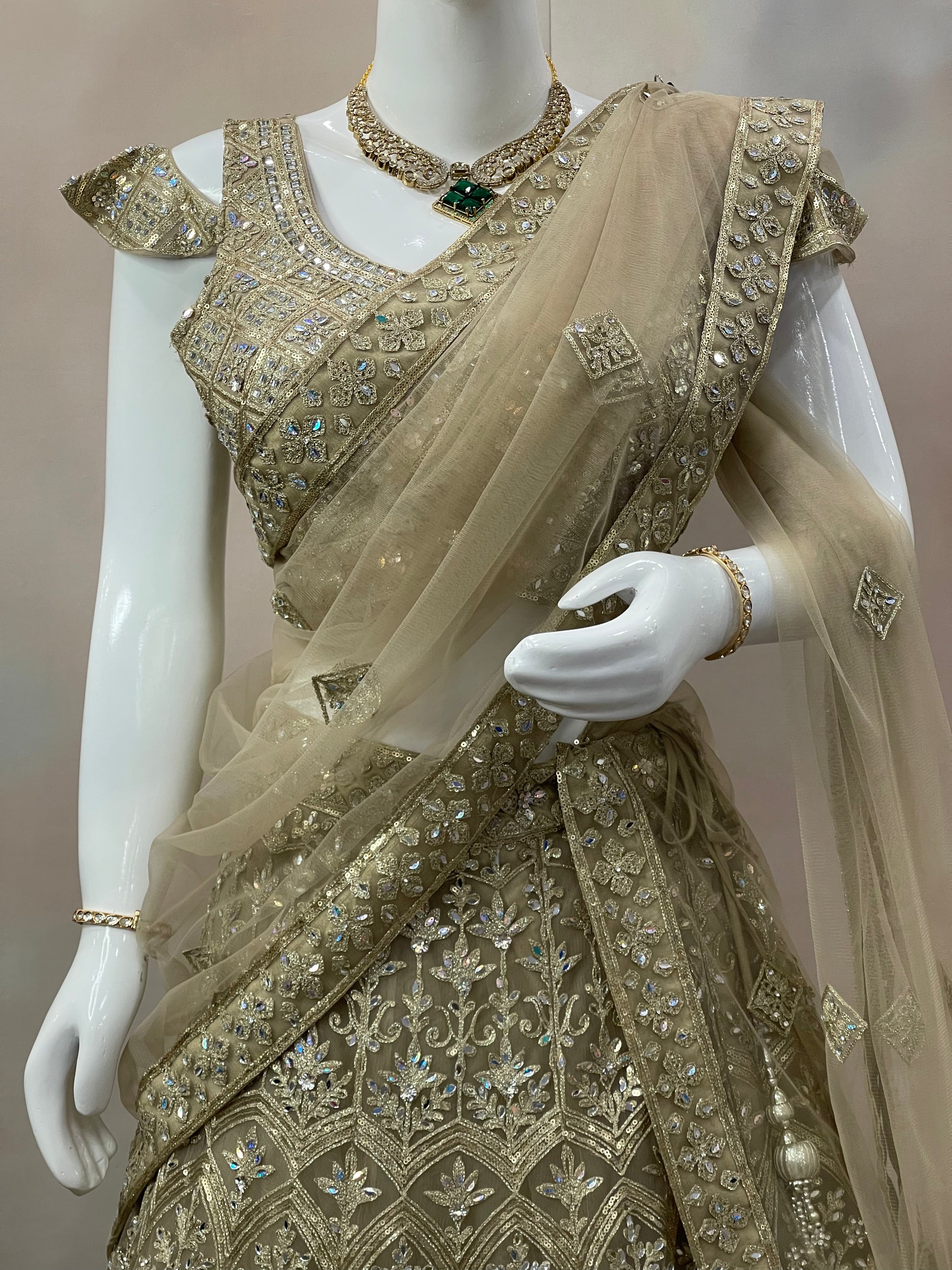 ✨ Regal Glamour – Rich golden embroidery with mirror & sequin highlights