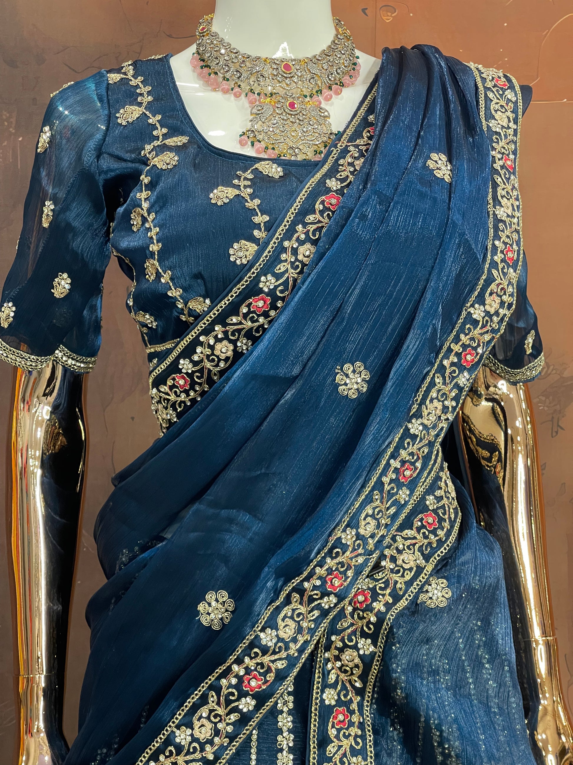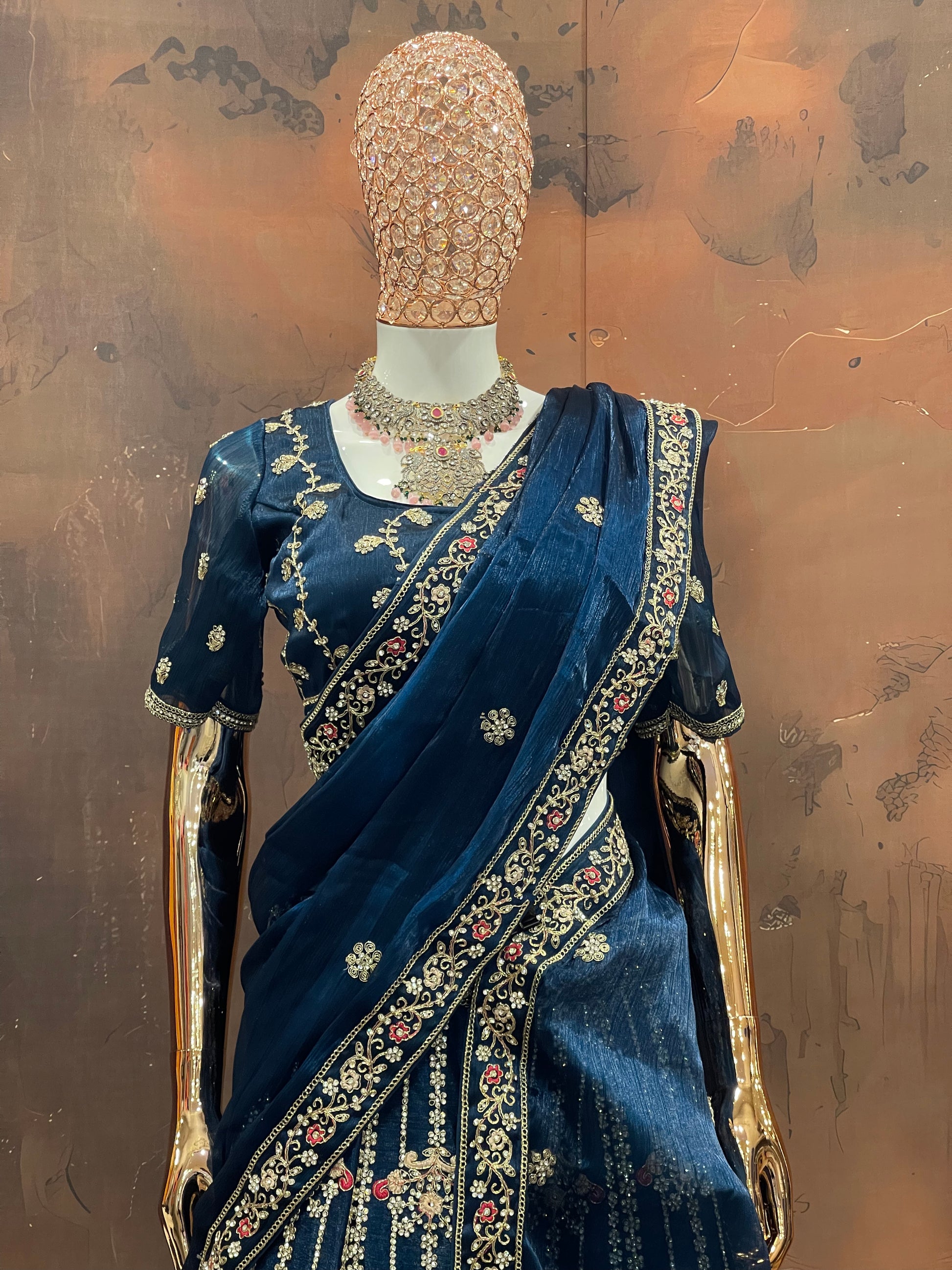 Midnight Bloom – Navy Blue Embroidered Lehenga Set