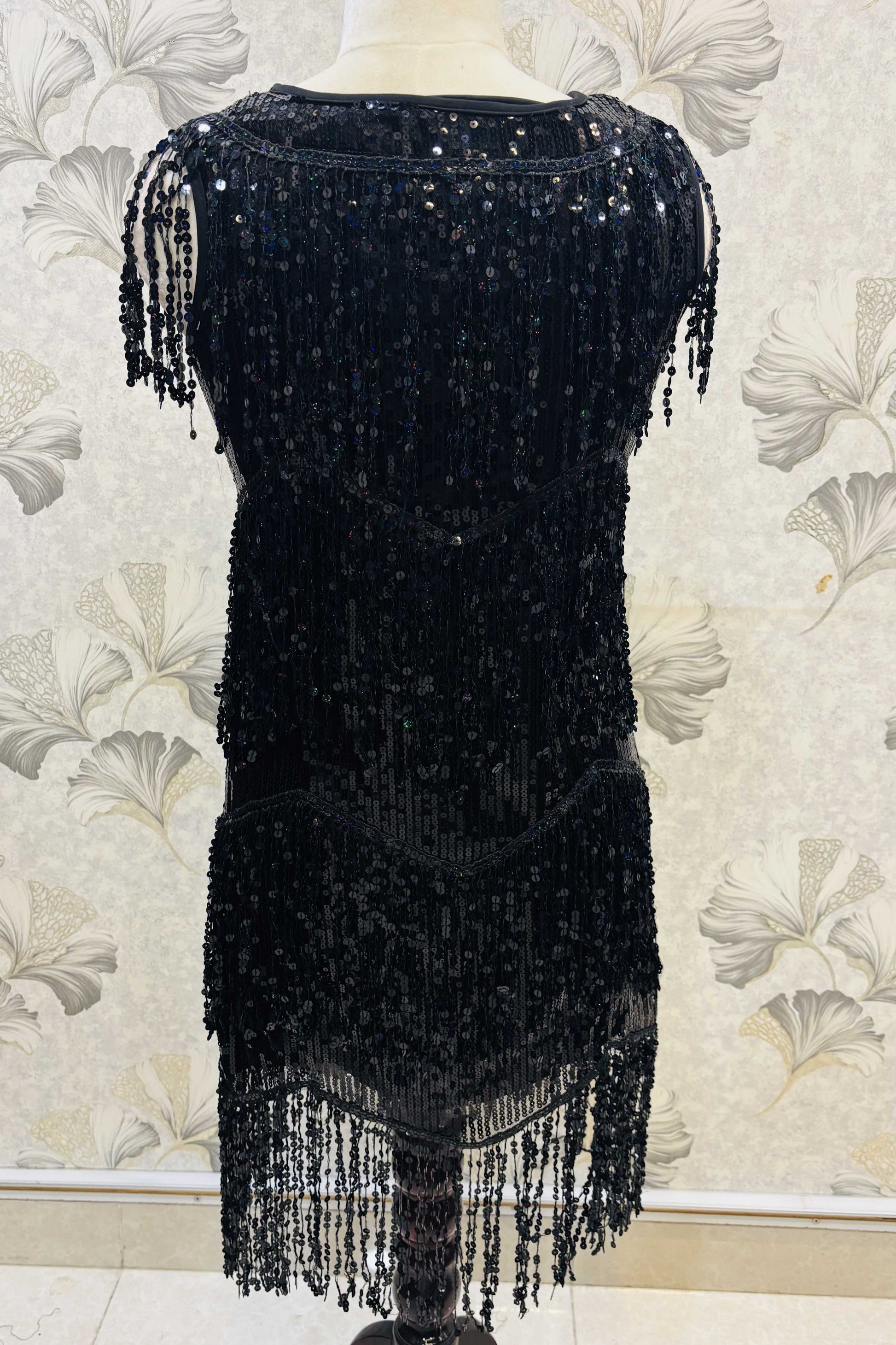 Step into the spotlight with this flapper-inspired black sequin fringe dress. A perfect pick for cocktail nights, retro-themed parties, or glamorous birthdays, it delivers bold sparkle and vintage charm in equal measure.