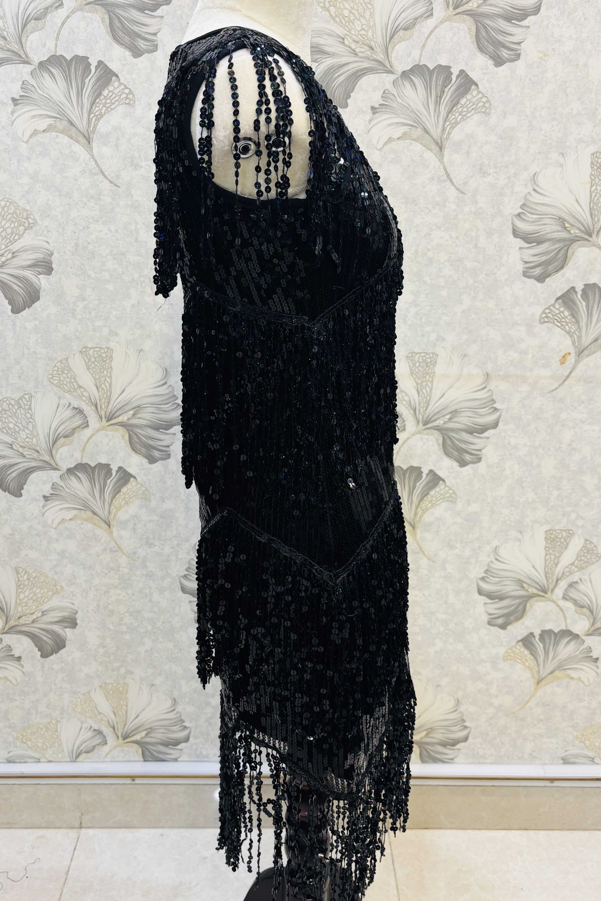 Midnight Dazzle – Black Sequin Fringe Flapper Dress
