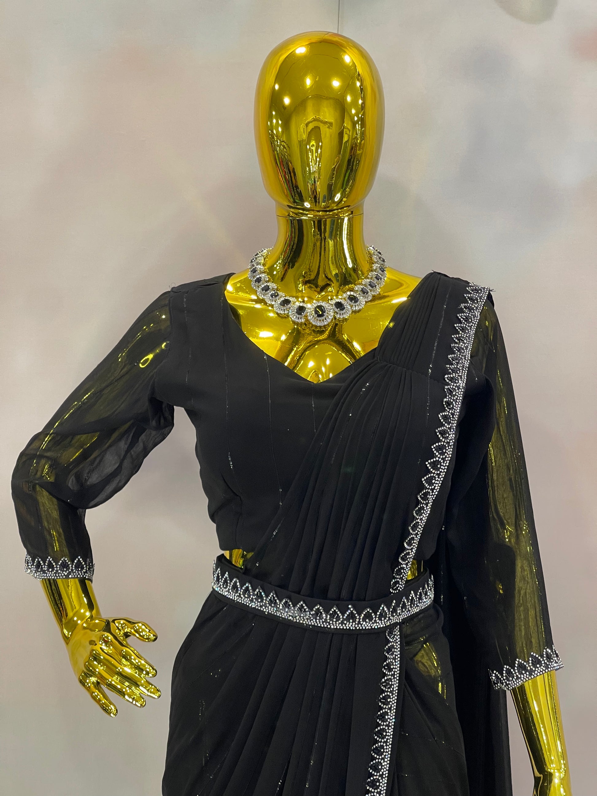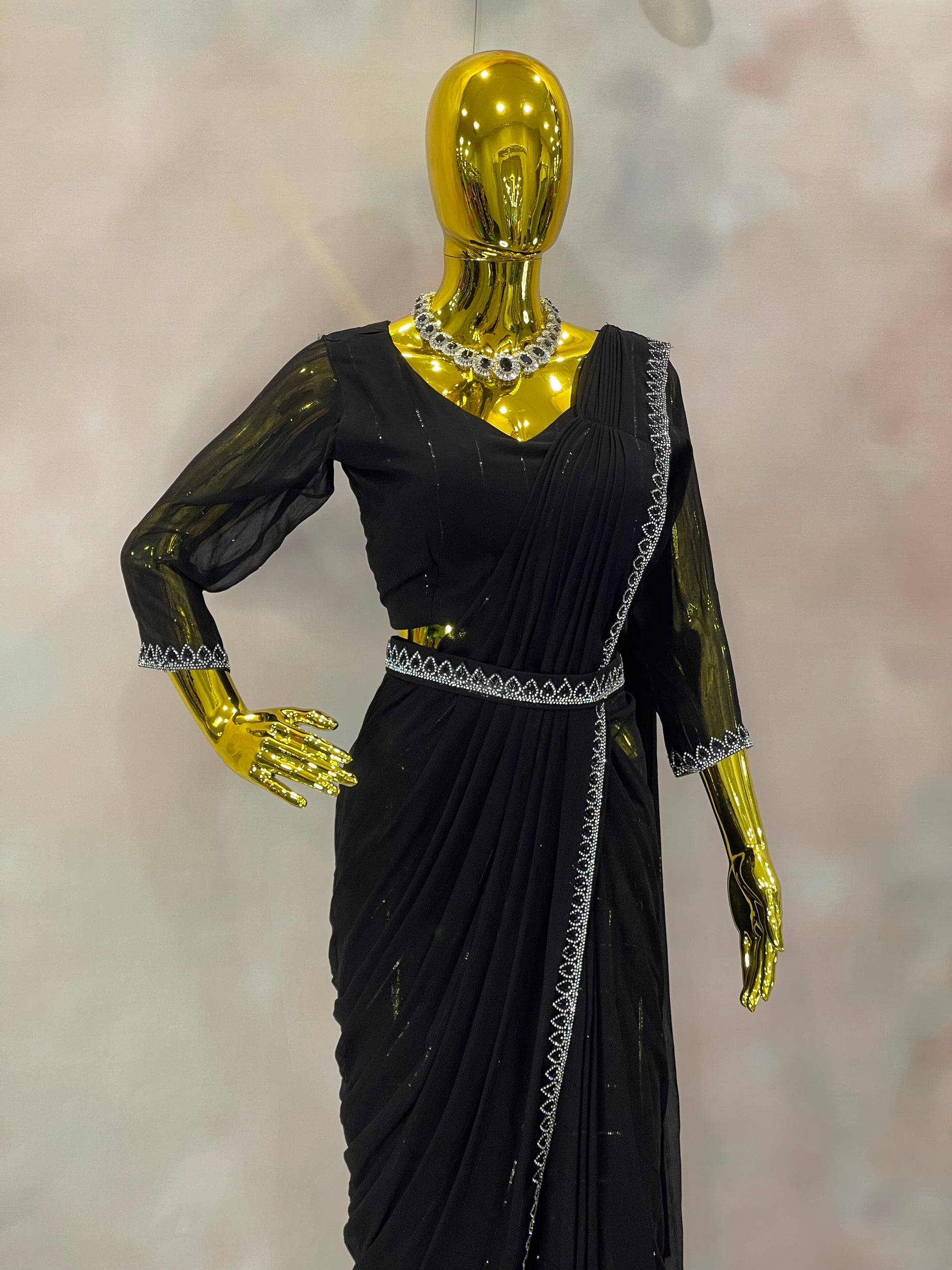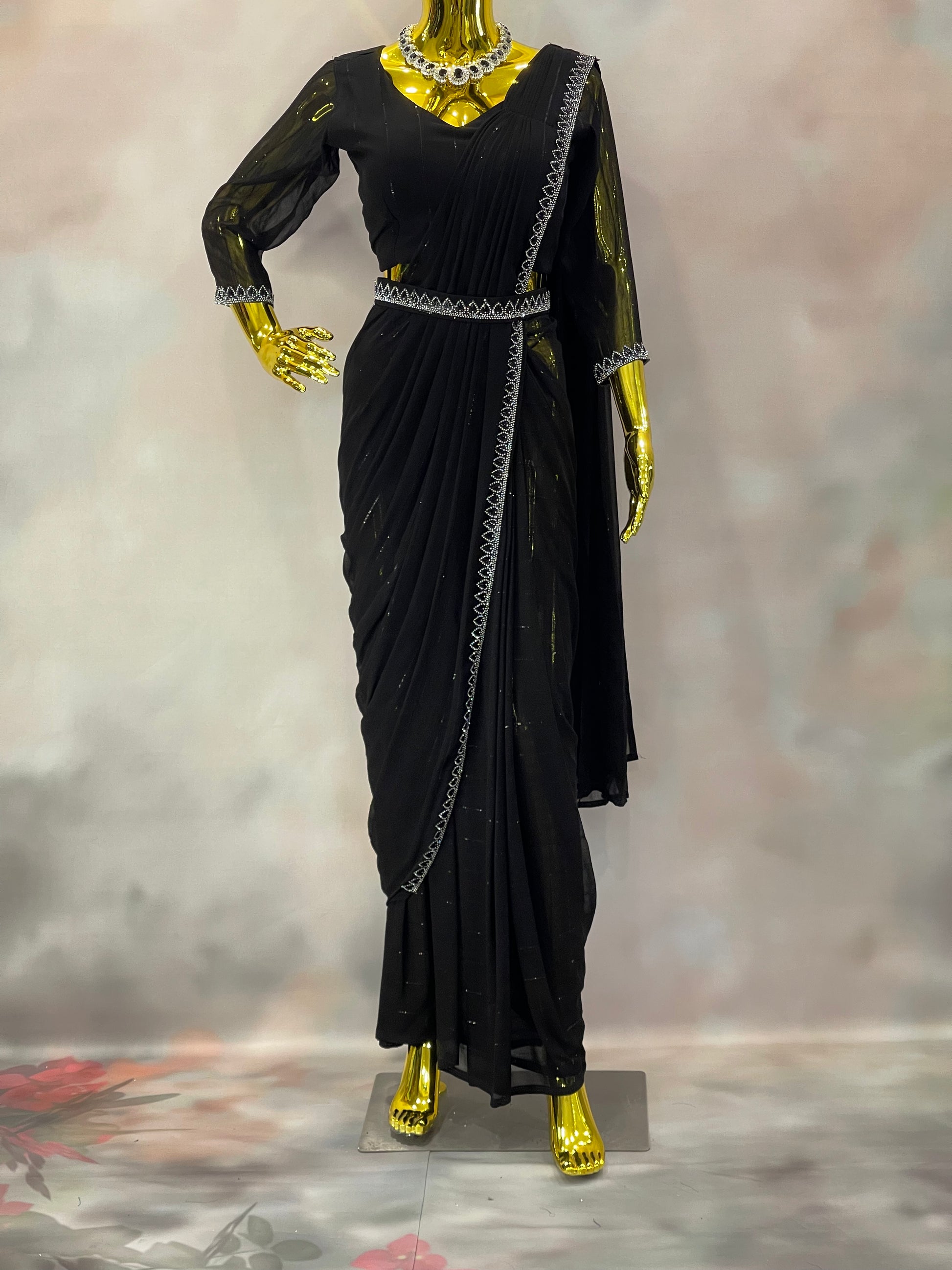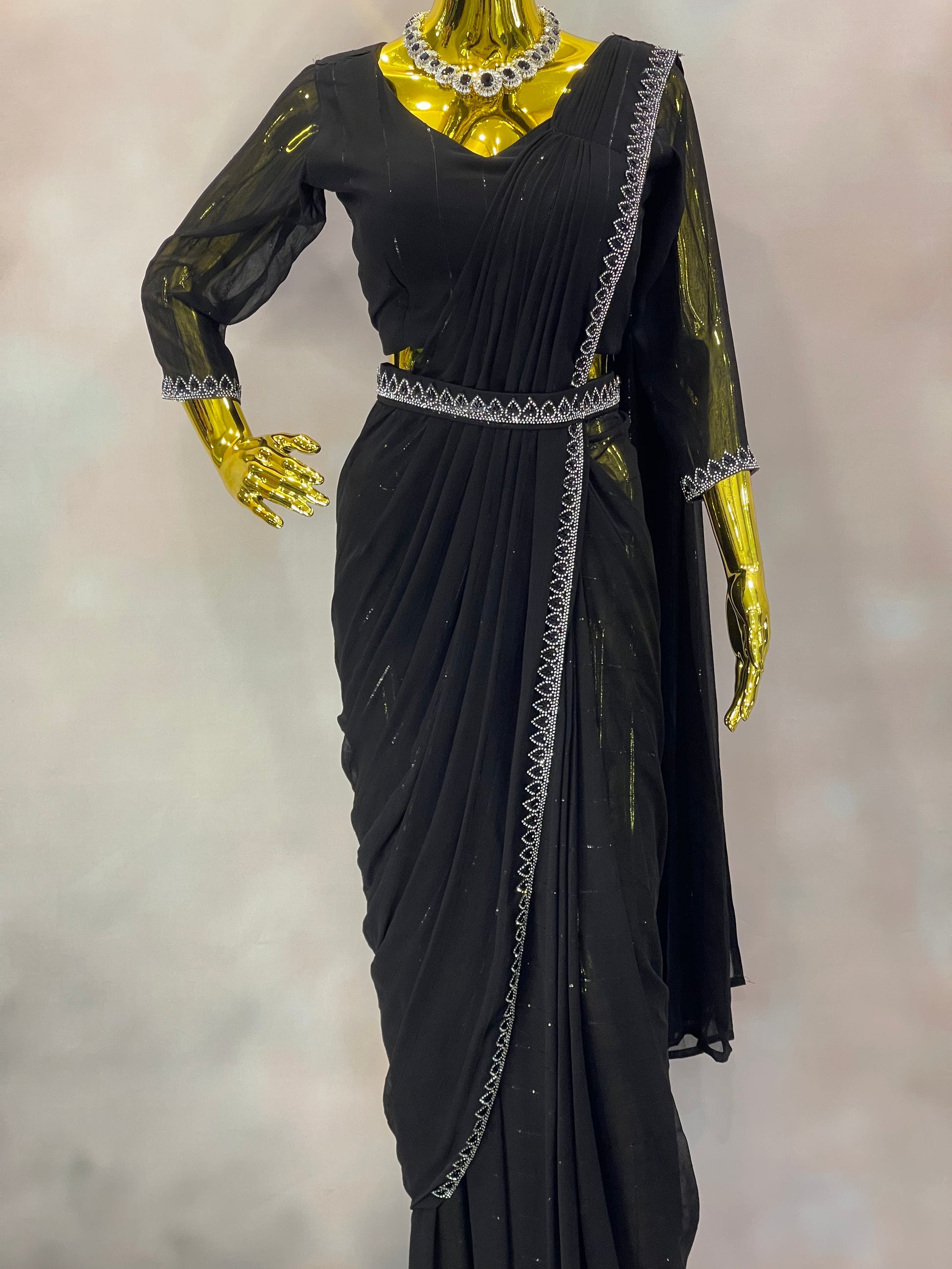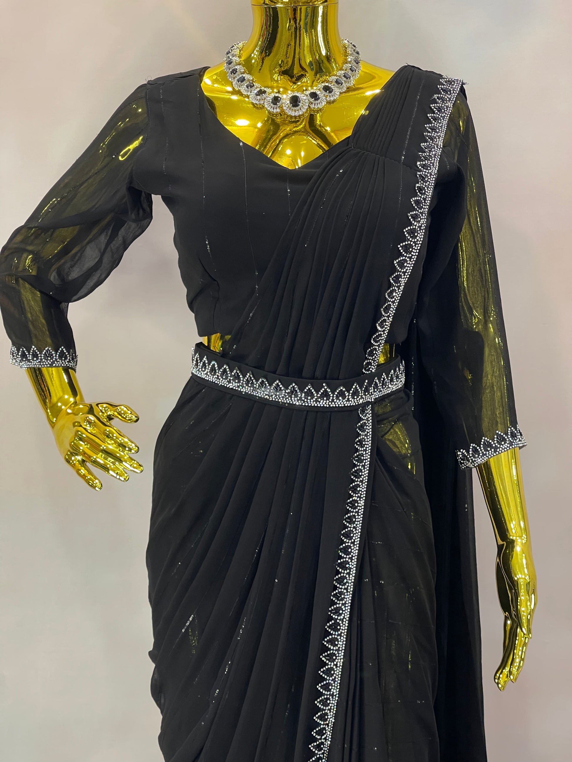Midnight Spark – Black Embellished Saree