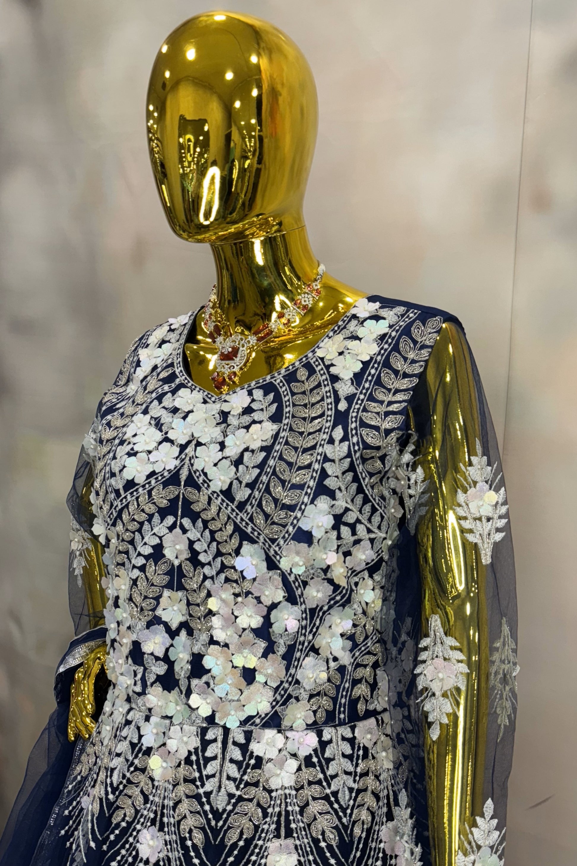 Midnight Bloom – Navy Blue Sequin Lehenga Set