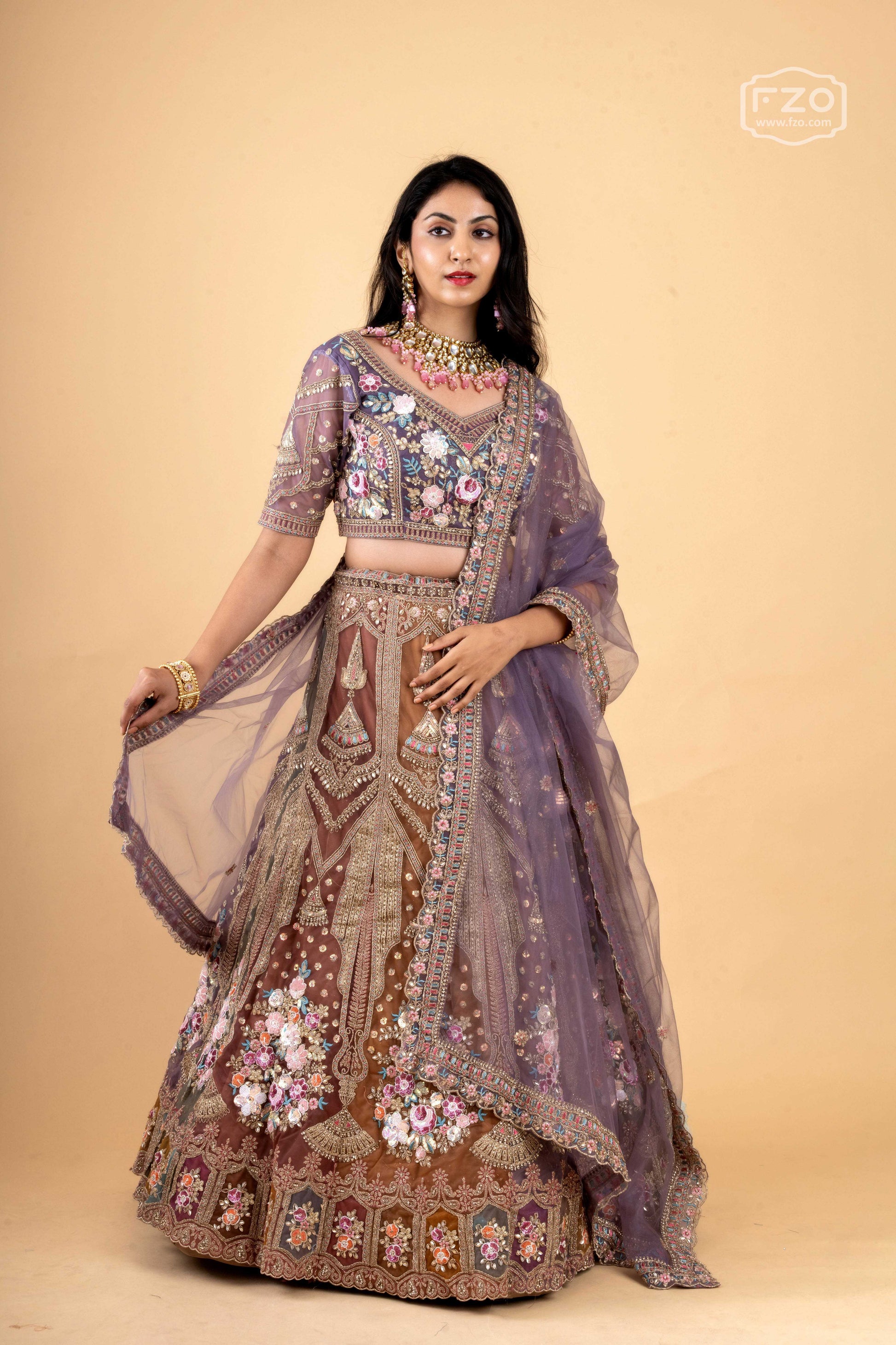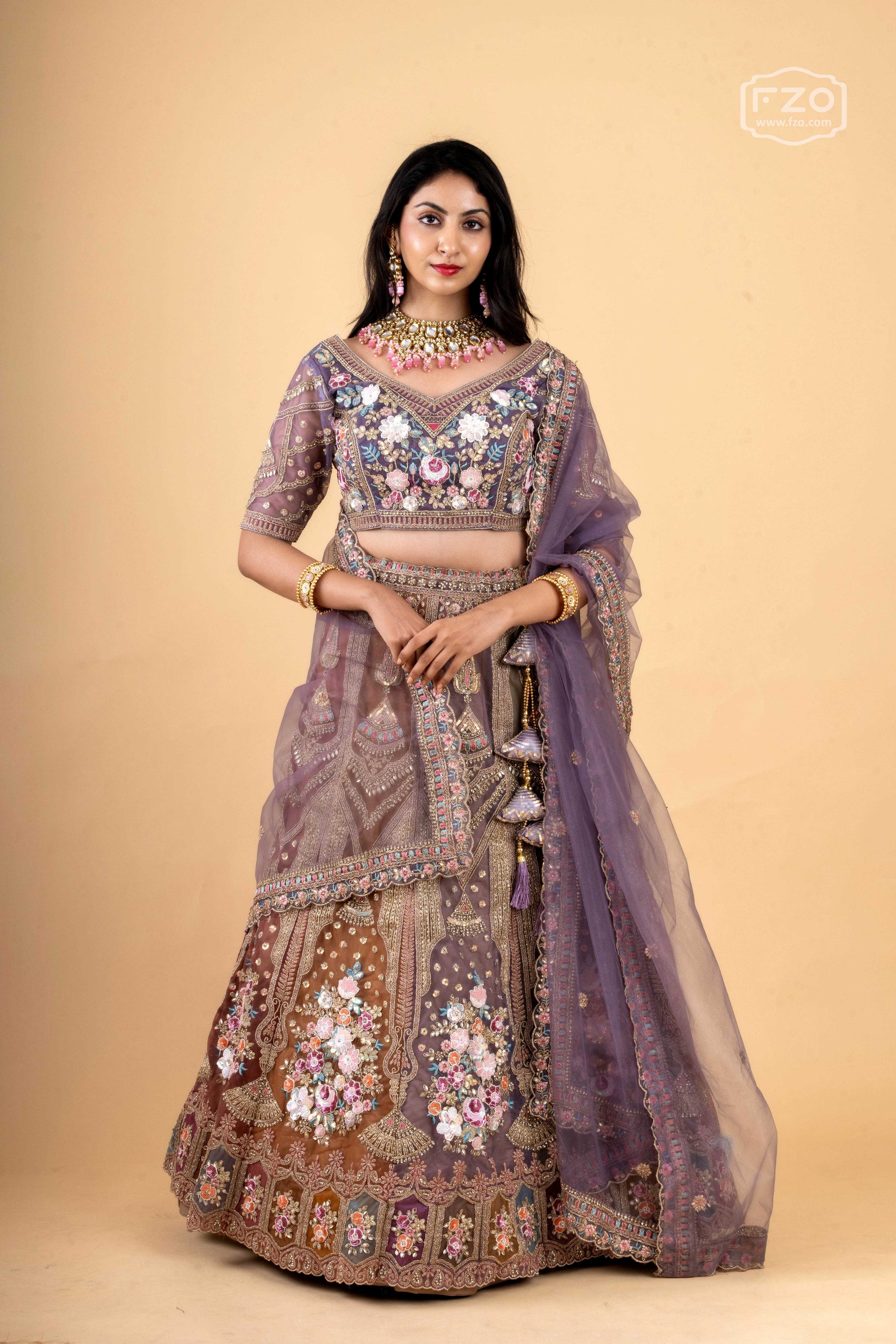Blooming Radiance – Lavender Thread work Lehenga with Net Dupatta