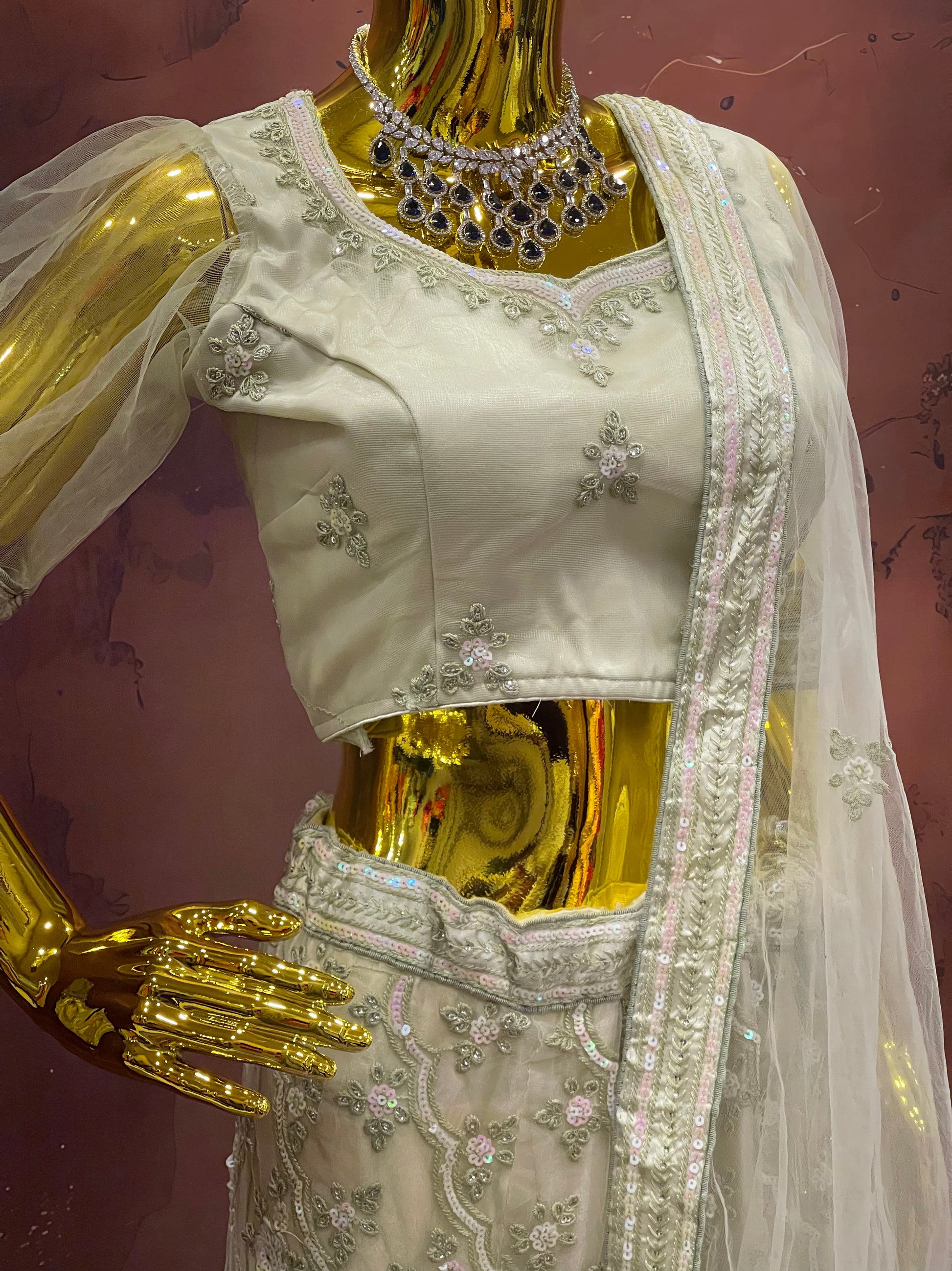Pearl Mist – Soft Mint light Green Embroidered Lehenga Set