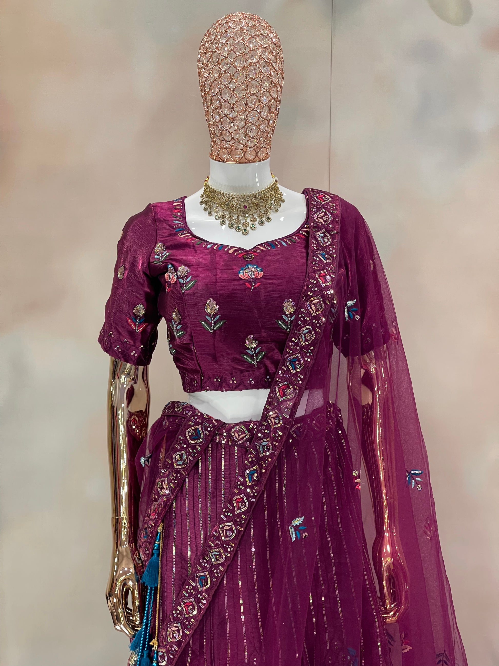 Plum Royale – Embroidered Velvet Bridal Lehenga