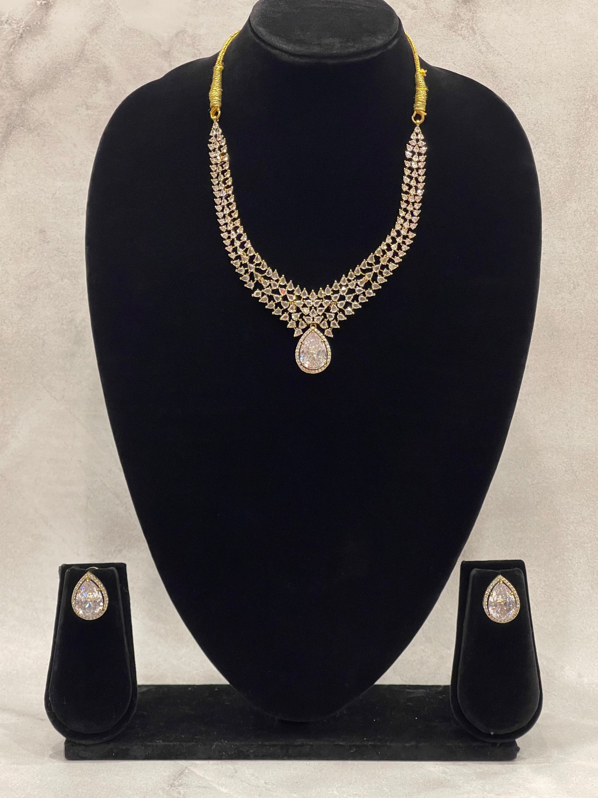 1 CZ stone-studded layered necklace with pear-shaped pendant