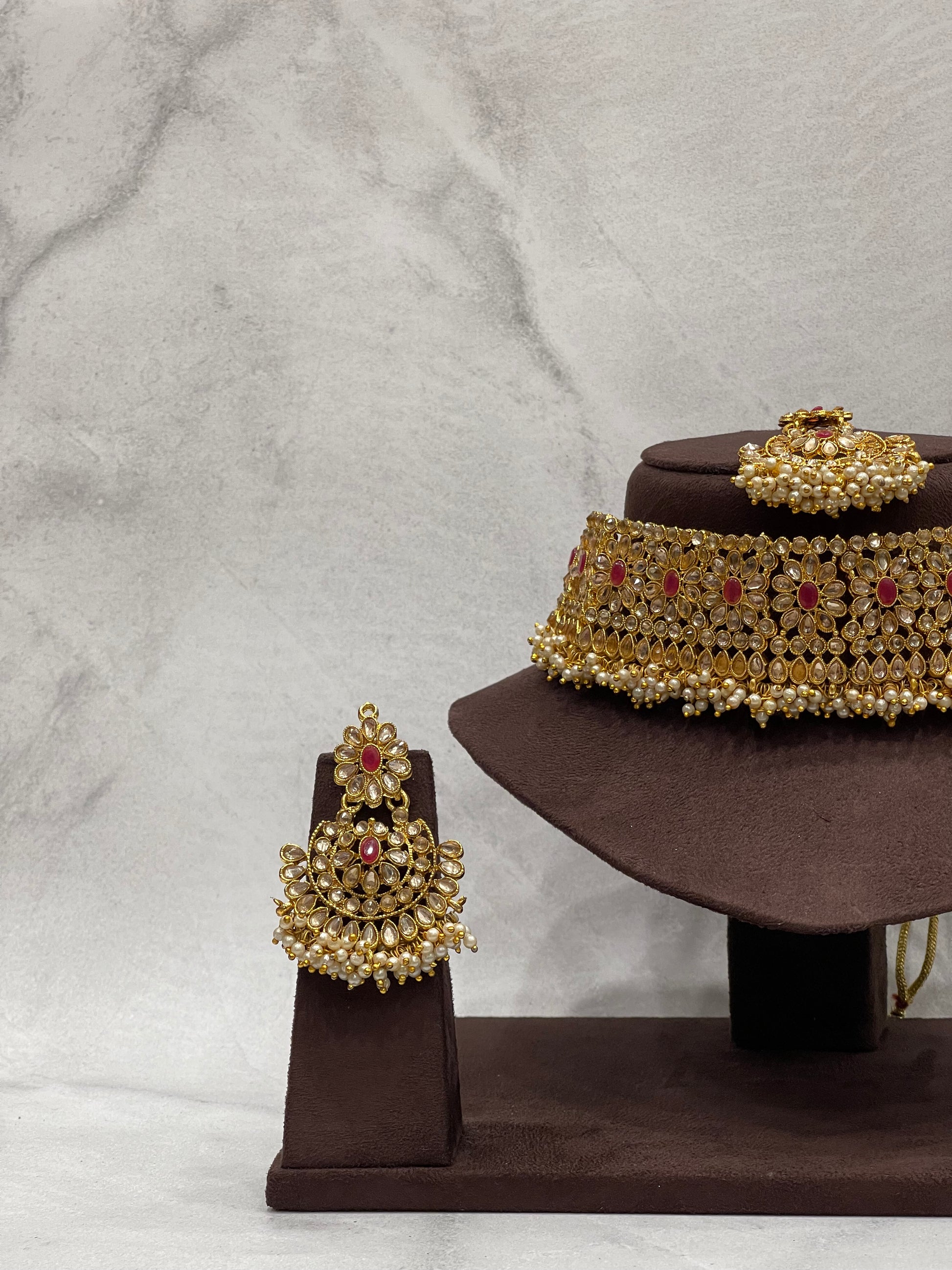 What’s In: Choker necklace, matching pair of earrings, and maang tikka.