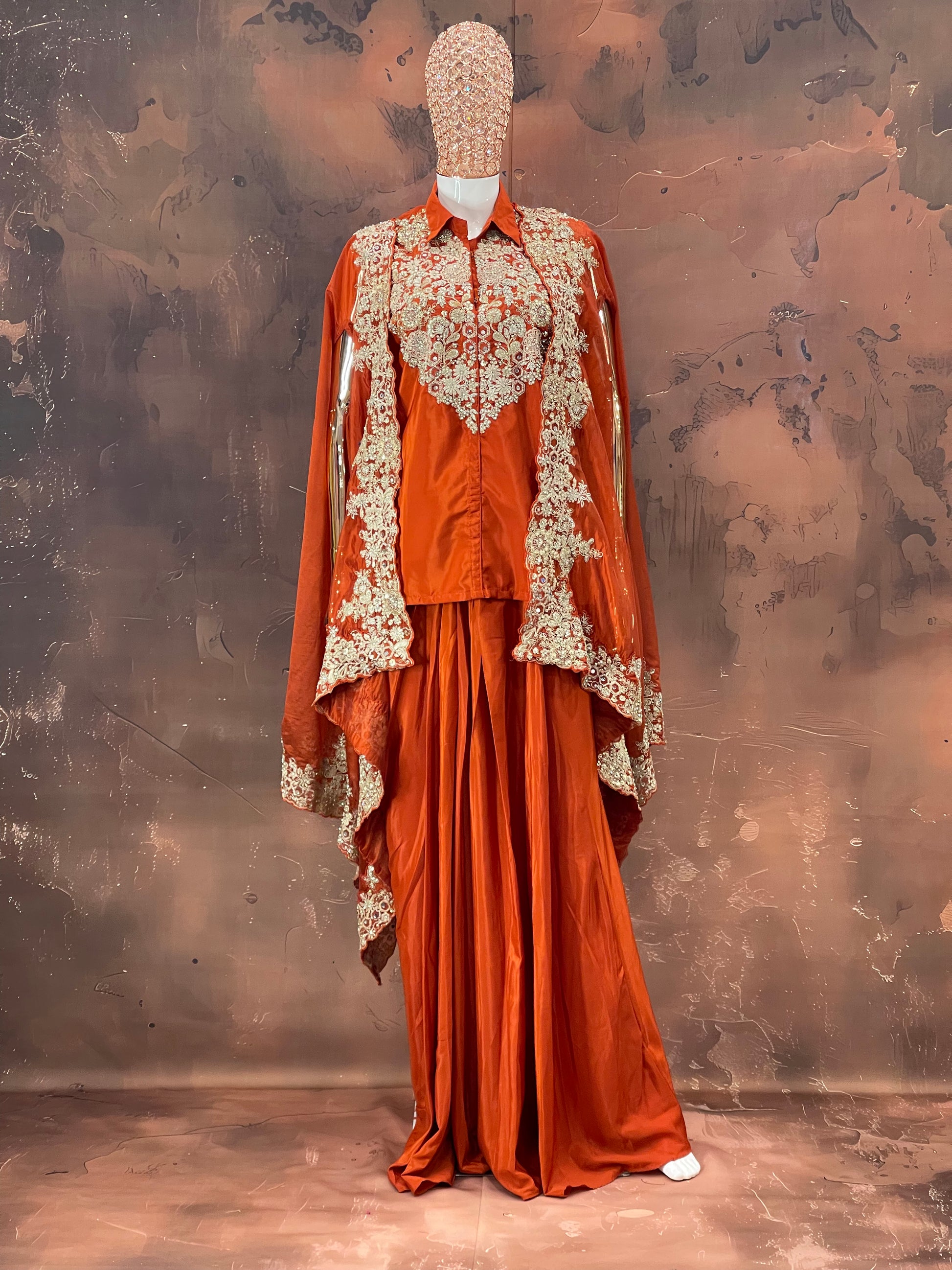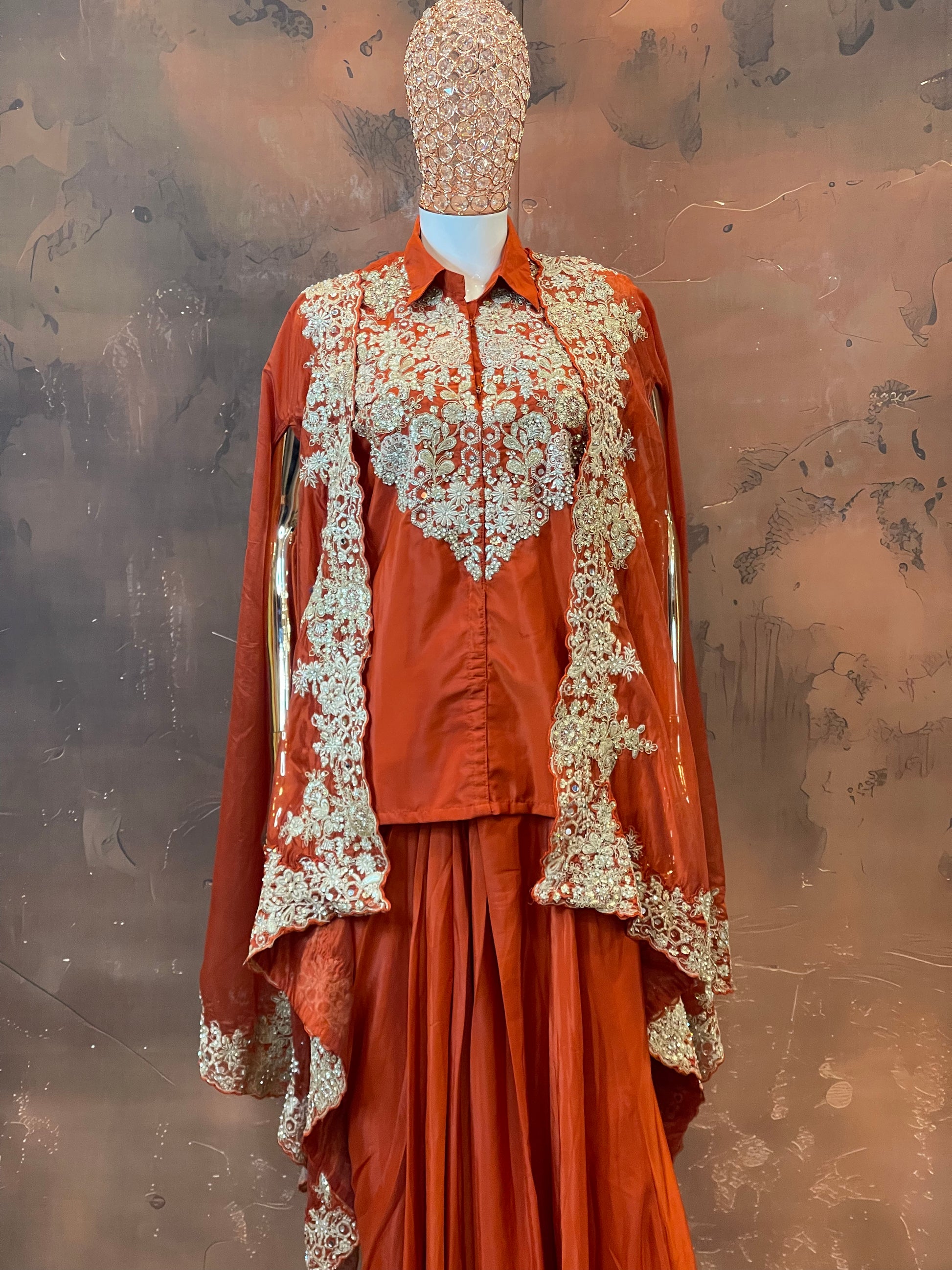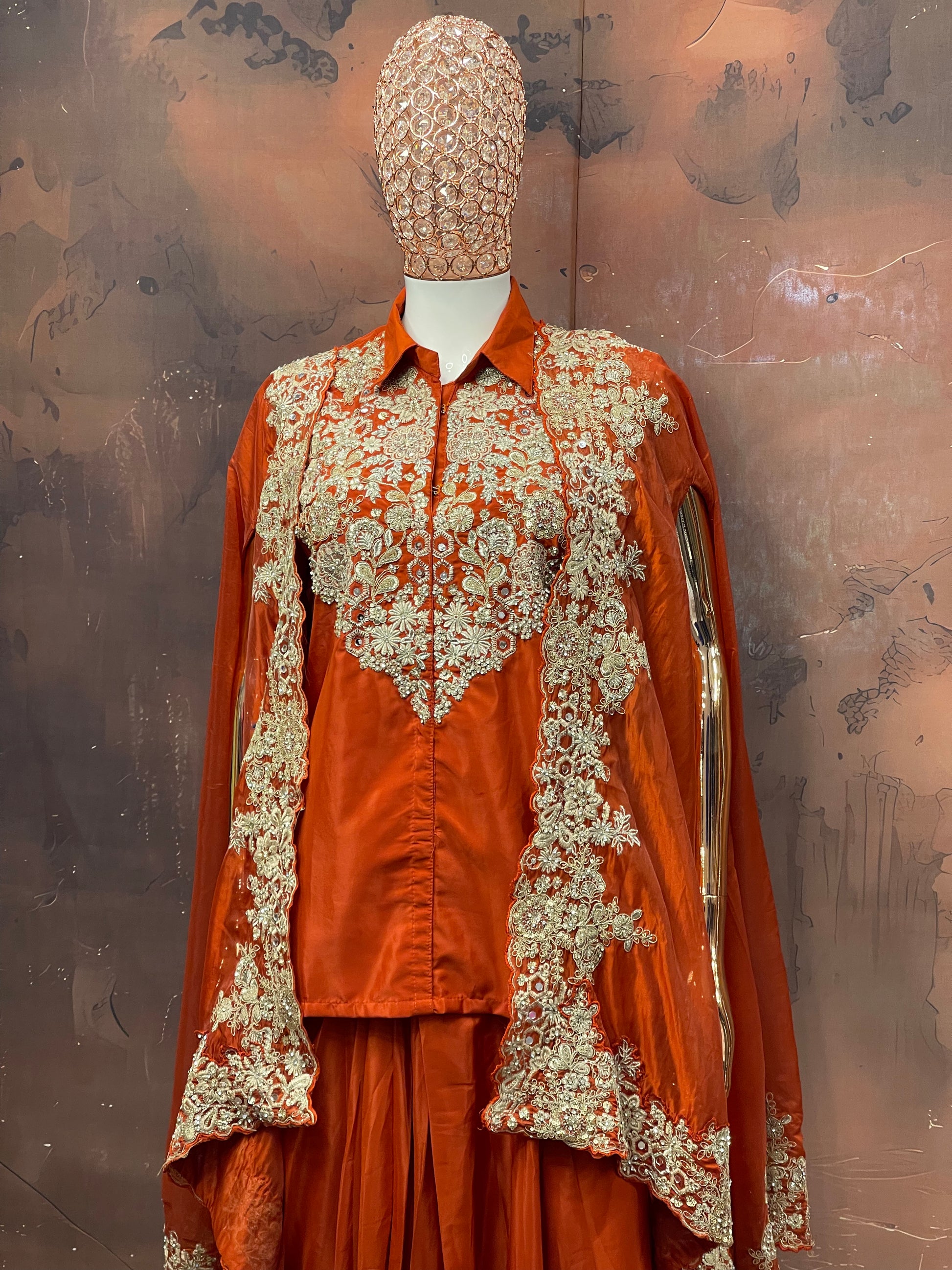 Regal Rust – Orange Embroidered Cape Lehenga Set