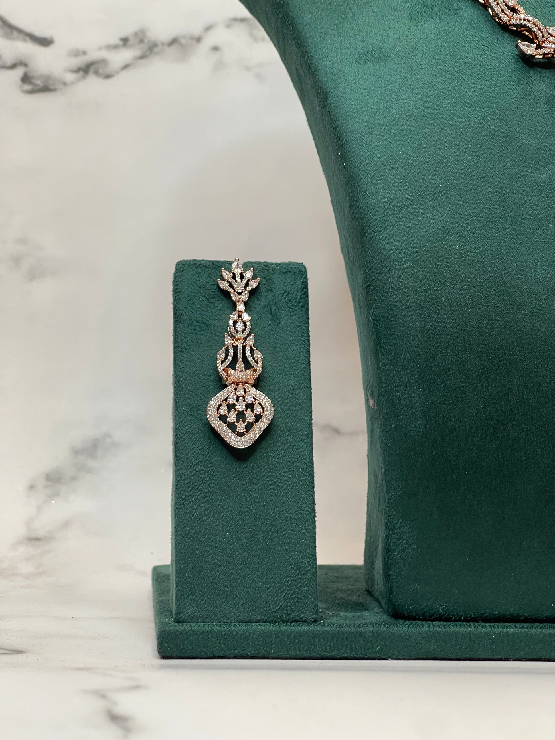 Rose Drape – CZ Woven Necklace Set with Pendant Detailing