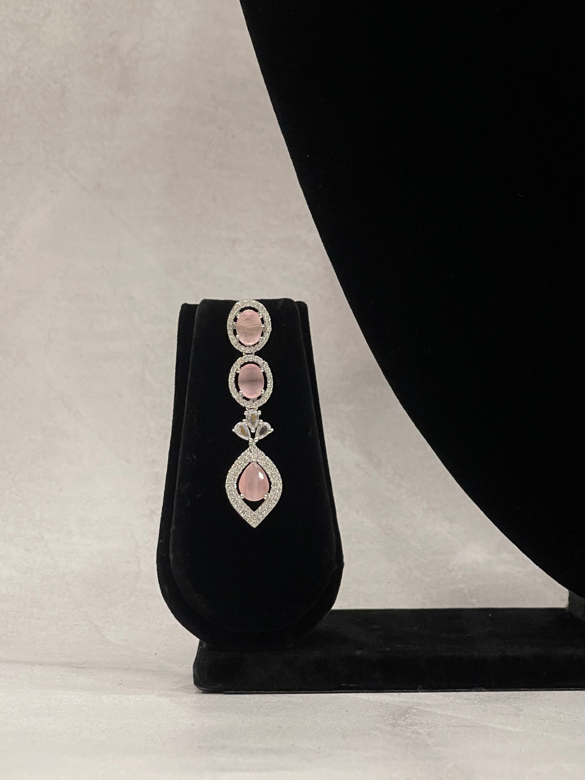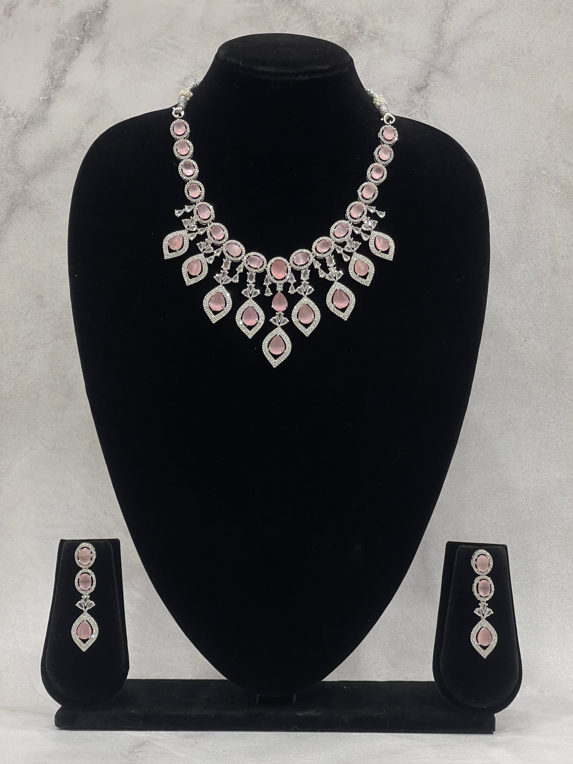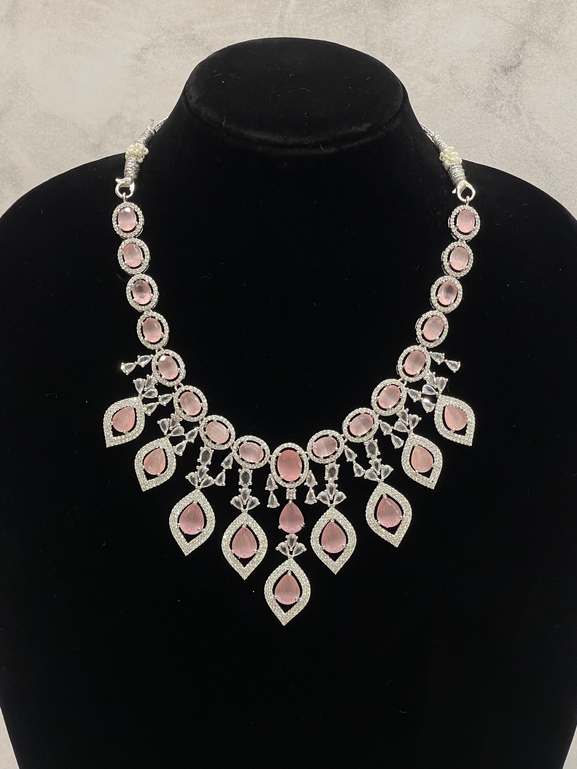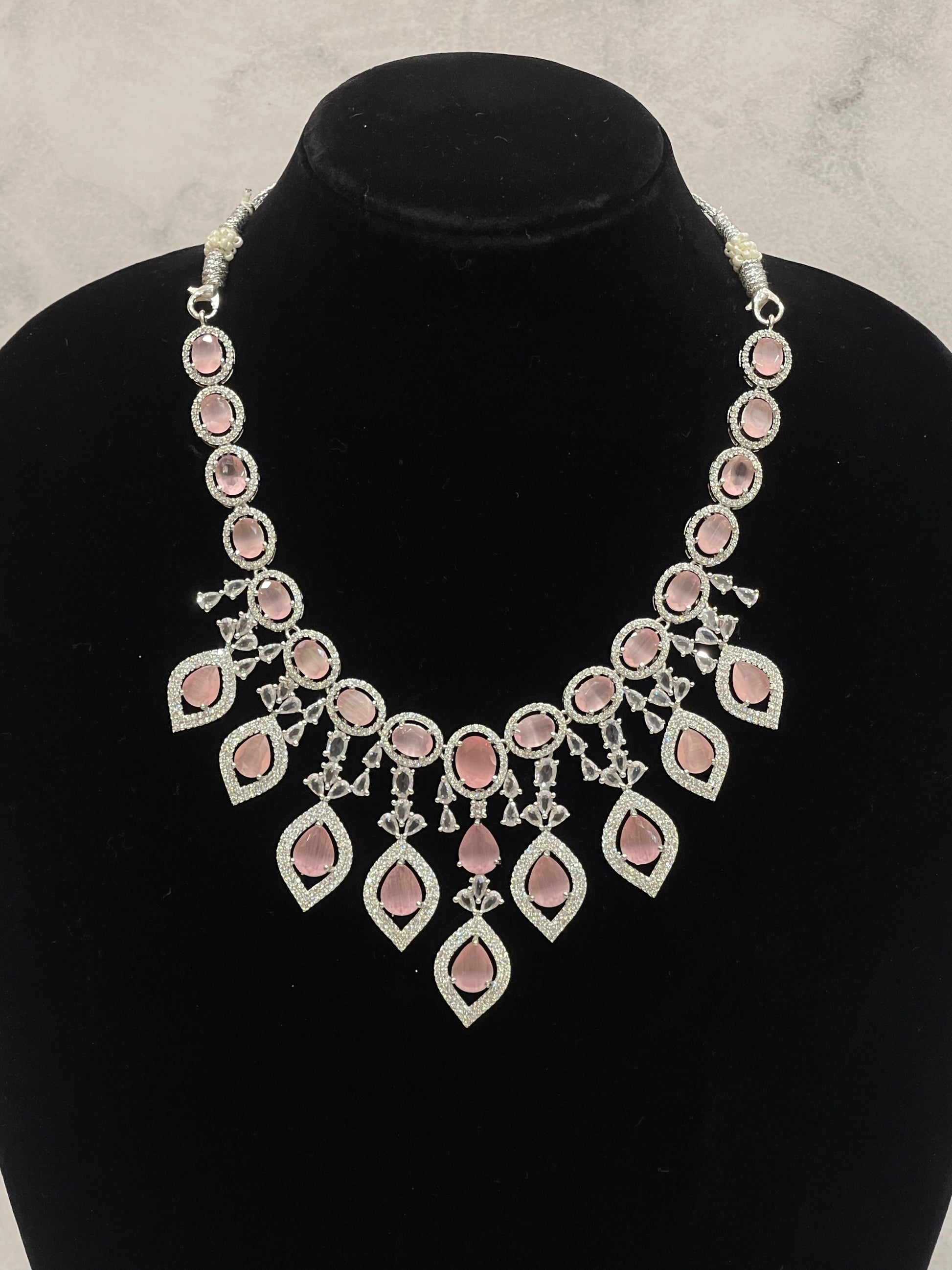 Rosé Twilight – CZ Necklace Set with Droplet Pink Stones