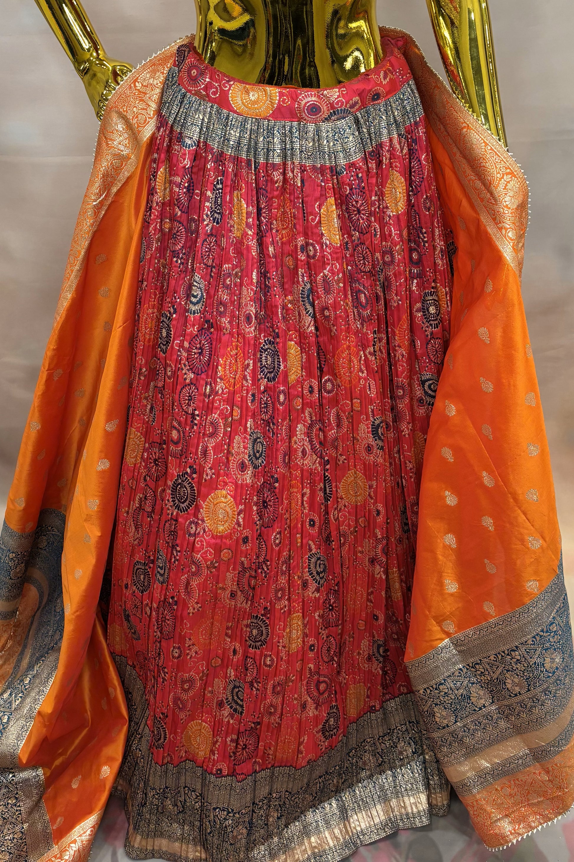 What’s Included: Mirror Work Blouse, Printed Lehenga Skirt, and Zari Dupatta